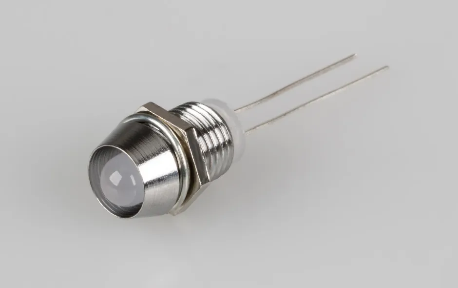 Держатель для 5мм светодиода. Латунь, покрытие - хром. Держатель + гайка + вставка.