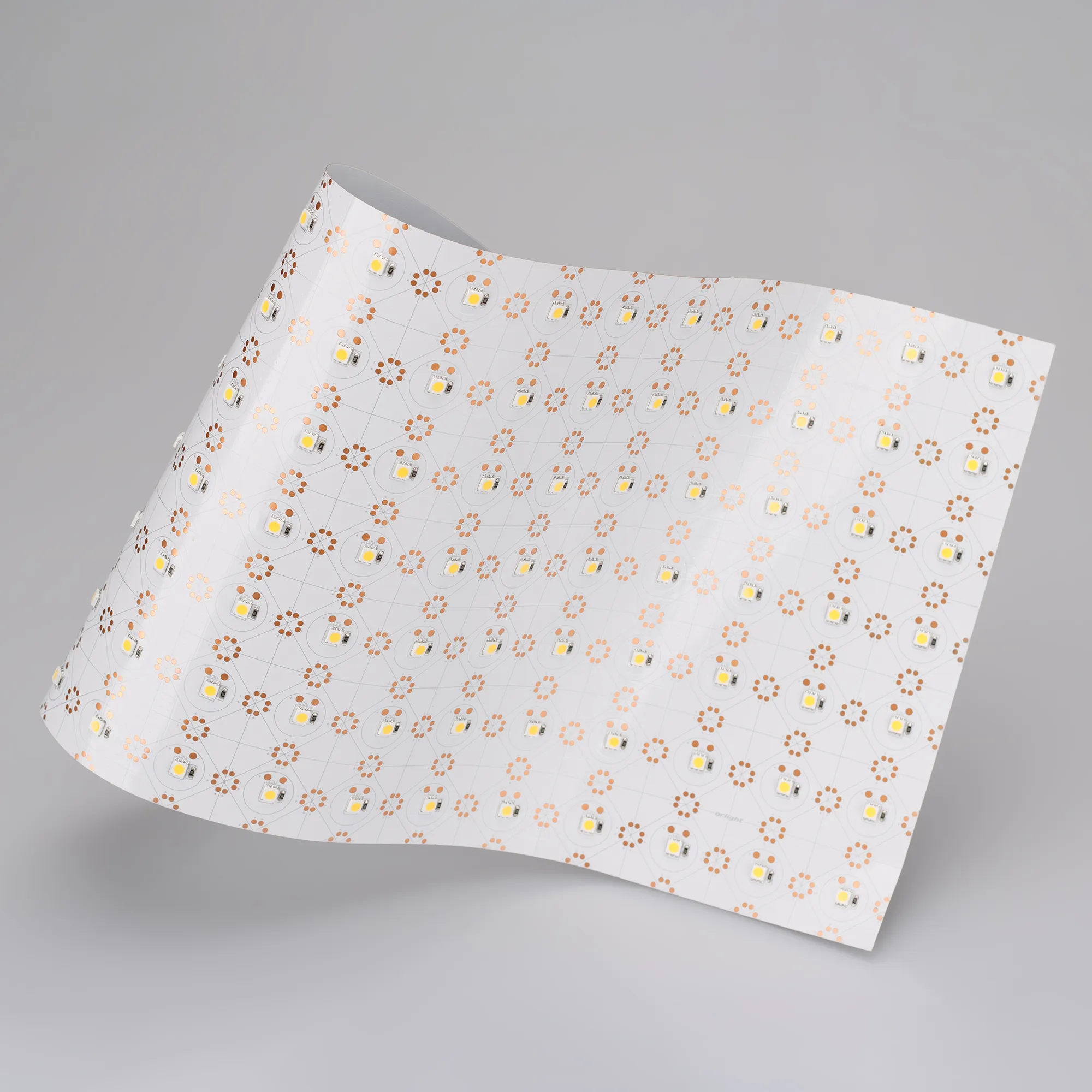 Гибкий лист, светодиоды smd 5060, 105шт. Для равномерной засветки большой площади. Белая плата, без 3М скотча. Цвет свечения ХОЛОДНЫЙ 8100-9600K. Питание 12VDC, мощность всего листа 22Вт, 1 сегмент 0,2 Вт. Можно вырезать фигуры и буквы произвольной формы по линиям на плате. Подача питания в любой точке '+' и '-'. Размер 500х235мм, мин.сегмент 34х34мм. Дополнительный теплоотвод не обязателен.