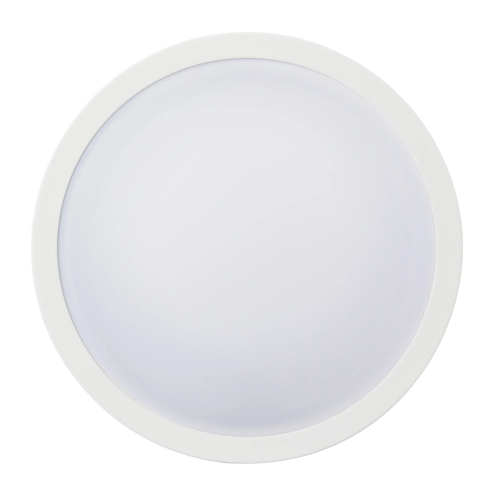 Поставка под заказ от 100 шт. Круглый светильник с контурным свечением. Корпус IP44 белый + вставка поликарбонат PC. Цвет БЕЛЫЙ 6000К, св.поток 1050-1200 лм, угол 120°+180°. Питание 180-240VAC, 15Вт (драйвер 400mA 26-40V в комплекте). Размеры 115х40 мм, установка в отв.105 мм, высота мин.40 мм.
