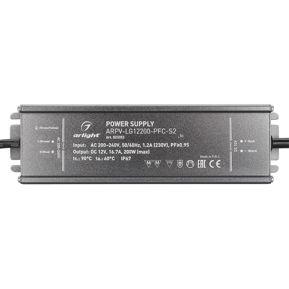 Блок питания ARPV-LG12200-PFC-S2 (12V, 16.7A, 200W) (Arlight, IP67 Металл, 5 лет)