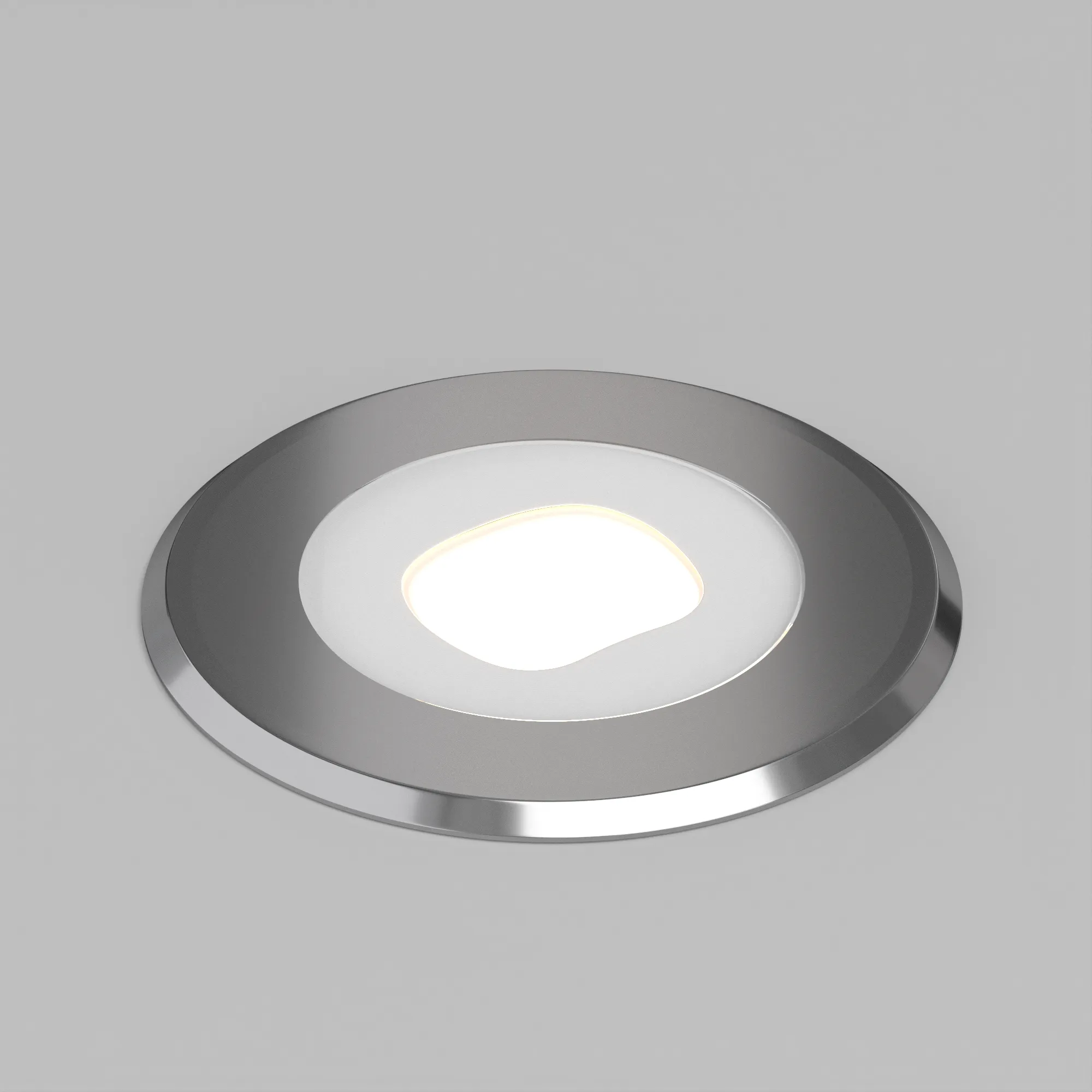 Встраиваемый светодиодный светильник для грунта и пола. Мощность 9Вт, световой поток 490лм, цвет ТЕПЛЫЙ 3000К. CRI(Ra)>80, угол 60° асимметричный, наклон луча 30°. Круглый влагозащищенный корпус IP67, нержавеющая сталь. Экран закалённое стекло. Питание 230В, 9Вт. Размер DxH Ø78x78мм. Установка в отверстие DxH Ø66x95мм.