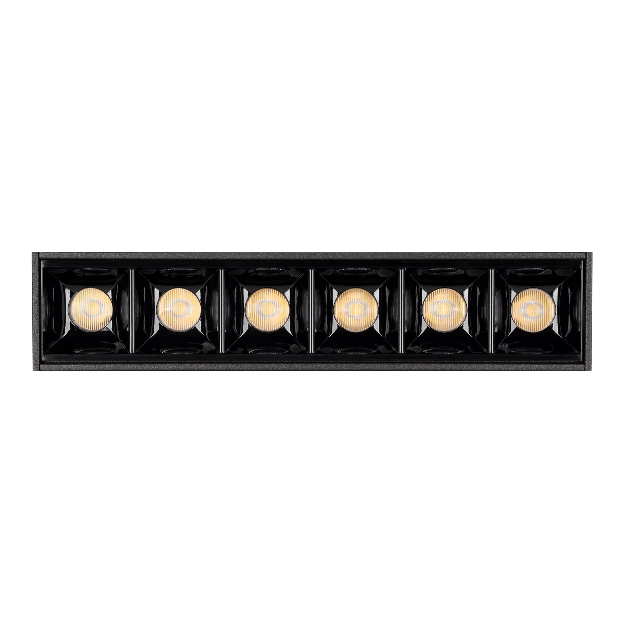Светильник для магнитных треков шириной 45мм, 6Вт. Цвет свечения ТЕПЛЫЙ 3000K, световой поток 400лм, угол 15°, CRI>90. Корпус прямоугольный, металл, цвет черный, IP20. Размеры LxWxH 163x35x43мм. Входное напряжение DC24V, мощность 6Вт. Драйвер DС24V/AC230V поставляется отдельно. Диммируется только с 026407(1), 027633.