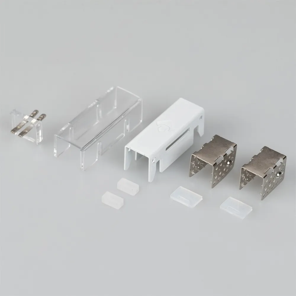 Герметичный двусторонний коннектор (соединитель) питания для гибкого неона MOONLIGHT, сечение 17х12мм, цвет белый. Подключение питания без пайки, IP54.