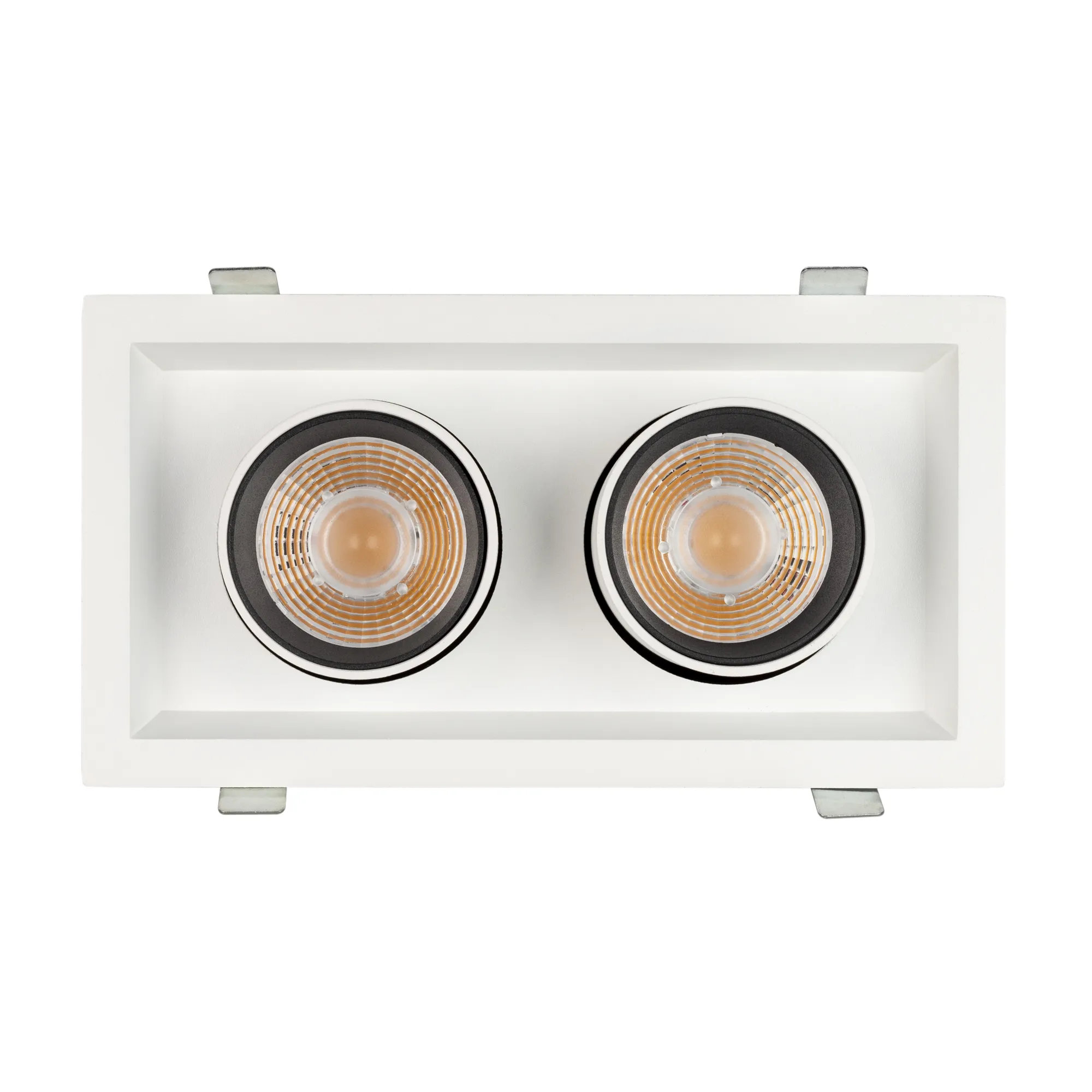 Встраиваемый поворотный выдвигающийся светильник для потолка. Светодиоды 2x10W, цвет БЕЛЫЙ ТЕПЛЫЙ 3000K, св.поток 1900лм, угол 24°, RA>90. Корпус белый. Мощность 20Вт, питание AC220-240V. Размеры WxLxH 112x210x127мм. Установка в отверстие 100x195мм. Драйвера в комплекте (2 шт 30-48V 250mA).
