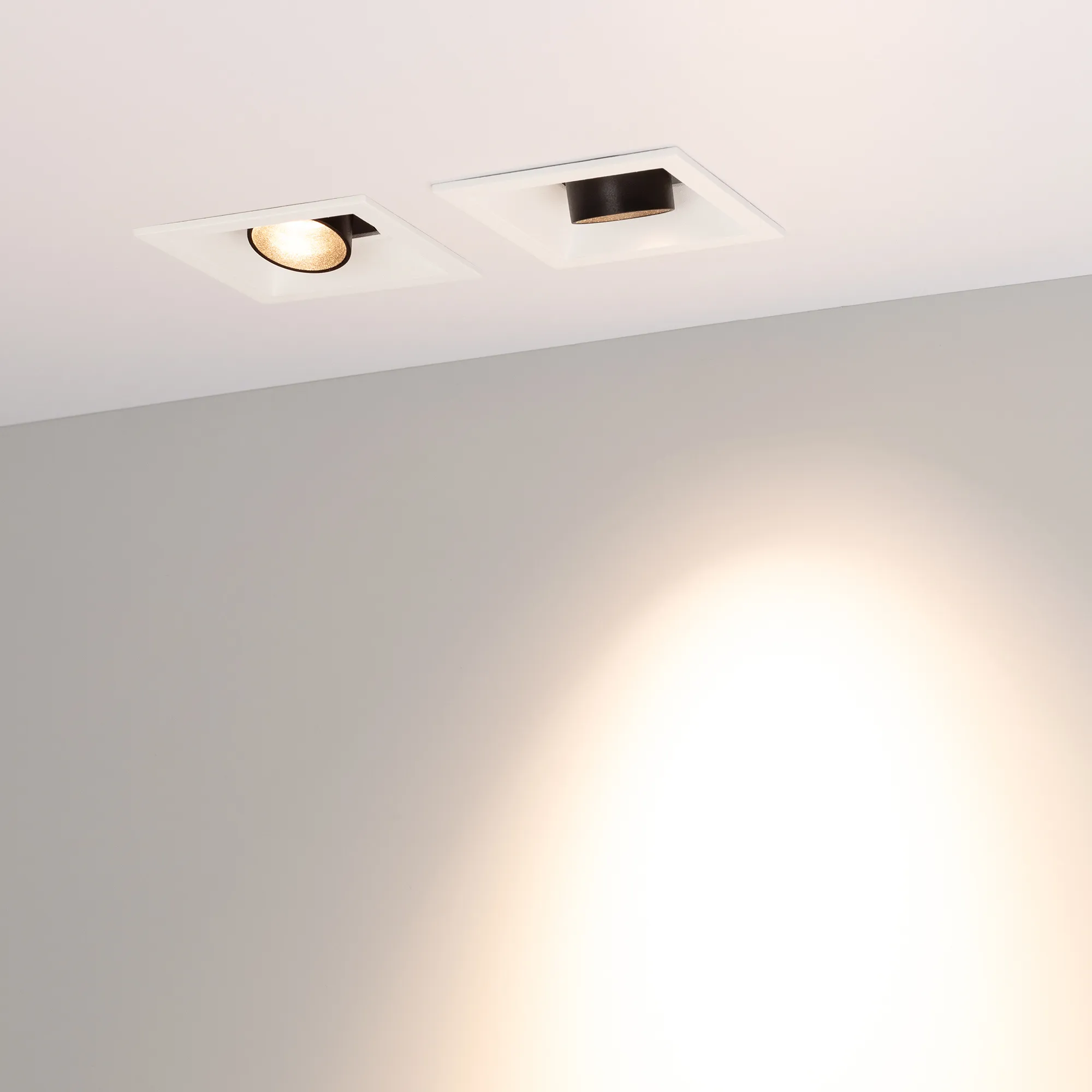 Встраиваемый поворотный светильник. Мощность 3 Вт, св. поток 180 лм, 60 лм/Вт, теплый 3000 K, CRI>98, угол 30°, напряжение питания 230 В. Белый прямоугольный корпус из алюминия, экран PMMA, степень защиты IP20. Размер: длина 67 мм, ширина 67 мм, высота 50 мм. Монтаж встраиваемый, установочное отверстие длина 60 мм, ширина 60 мм. Драйвер 3-12 В, 500 мА, пульсация <1%.