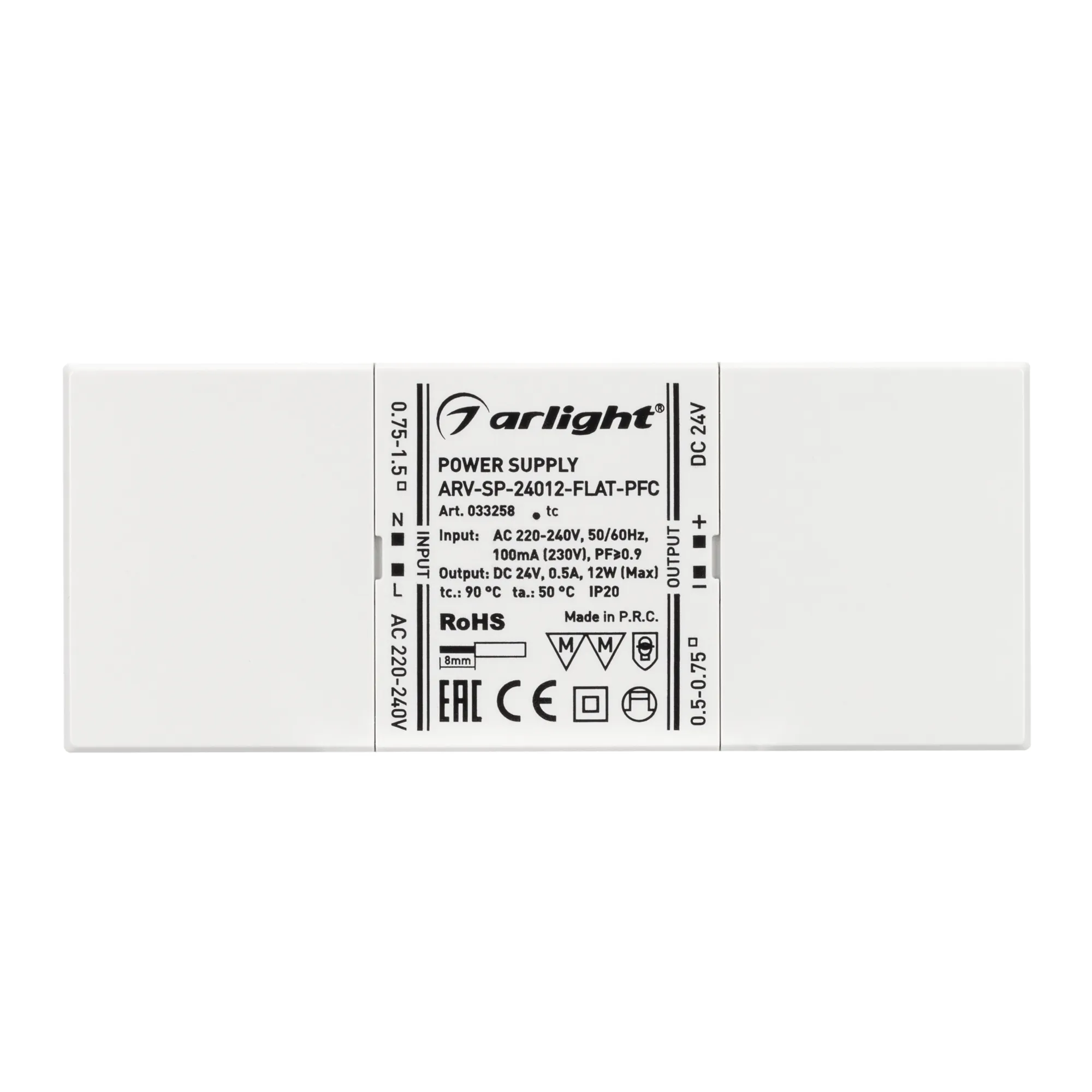 В магазине Мельковский Свет Вы можете купить "Блок питания ARV-SP-24012-FLAT-PFC (24V, 0.5A, 12W) (Arlight, IP20 Пластик, 5 лет)"