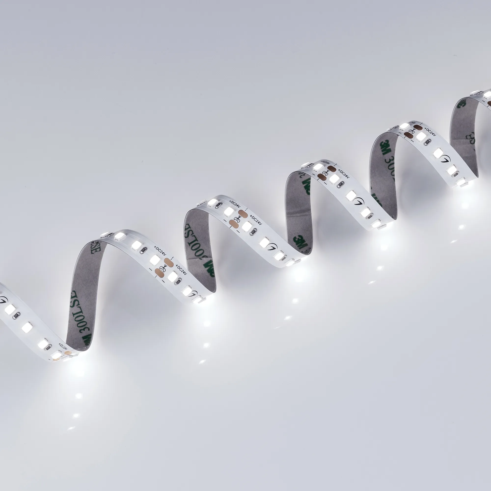 Светодиодная лента повышенной прочности TWIST серии A120. Светодиоды SMD 2835, 120 шт/м, белая плата шириной 10 мм, скотч 3M. Цвет БЕЛЫЙ 6000K, индекс цветопередачи CRI>90, угол 120°. Питание 24 В, мощность 10 Вт/м (50 Вт на 5 м). Размеры 5000x10x1.5 мм. Мин. отрезок 50 мм, 6 светодиодов. Цена за 1 м.