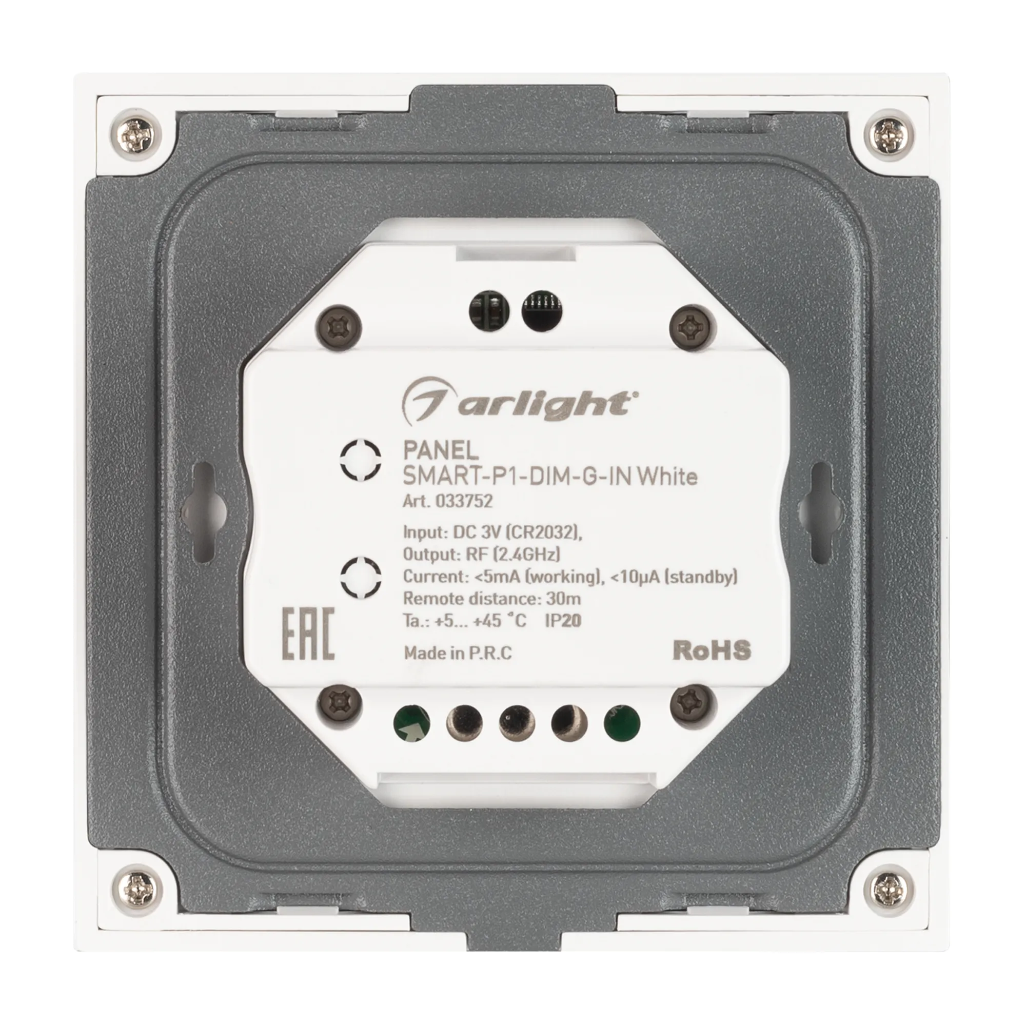 Панель SMART-P1-DIM-G-IN White (3V, Rotary, 2.4G) (Arlight, IP20 Пластик, 5 лет)