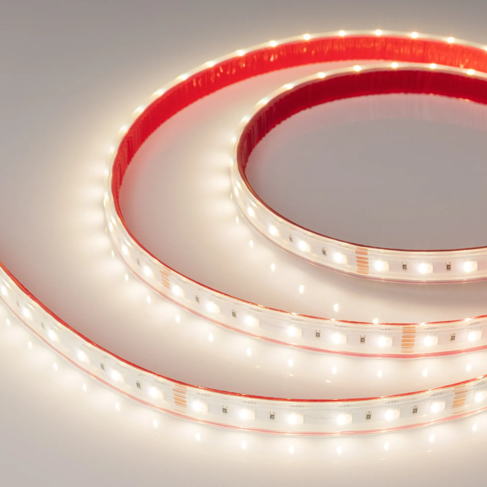 Светодиодная герметичная лента RTW серии B60, IP67 (PS - силиконовая экструзия). Светодиоды 5060 4-in-1, 60 шт/м, белая плата шириной 12 мм, скотч 3M. Цвет RGB + ТЕПЛЫЙ 3000K, индекс цветопередачи CRI>85, угол 120°. Питание 24 В, мощность 19.2 Вт/м (96 Вт на 5 м). Размеры 5000x14x4.8 мм. Мин. отрезок 100 мм, 6 светодиодов. Цена за 1 м.