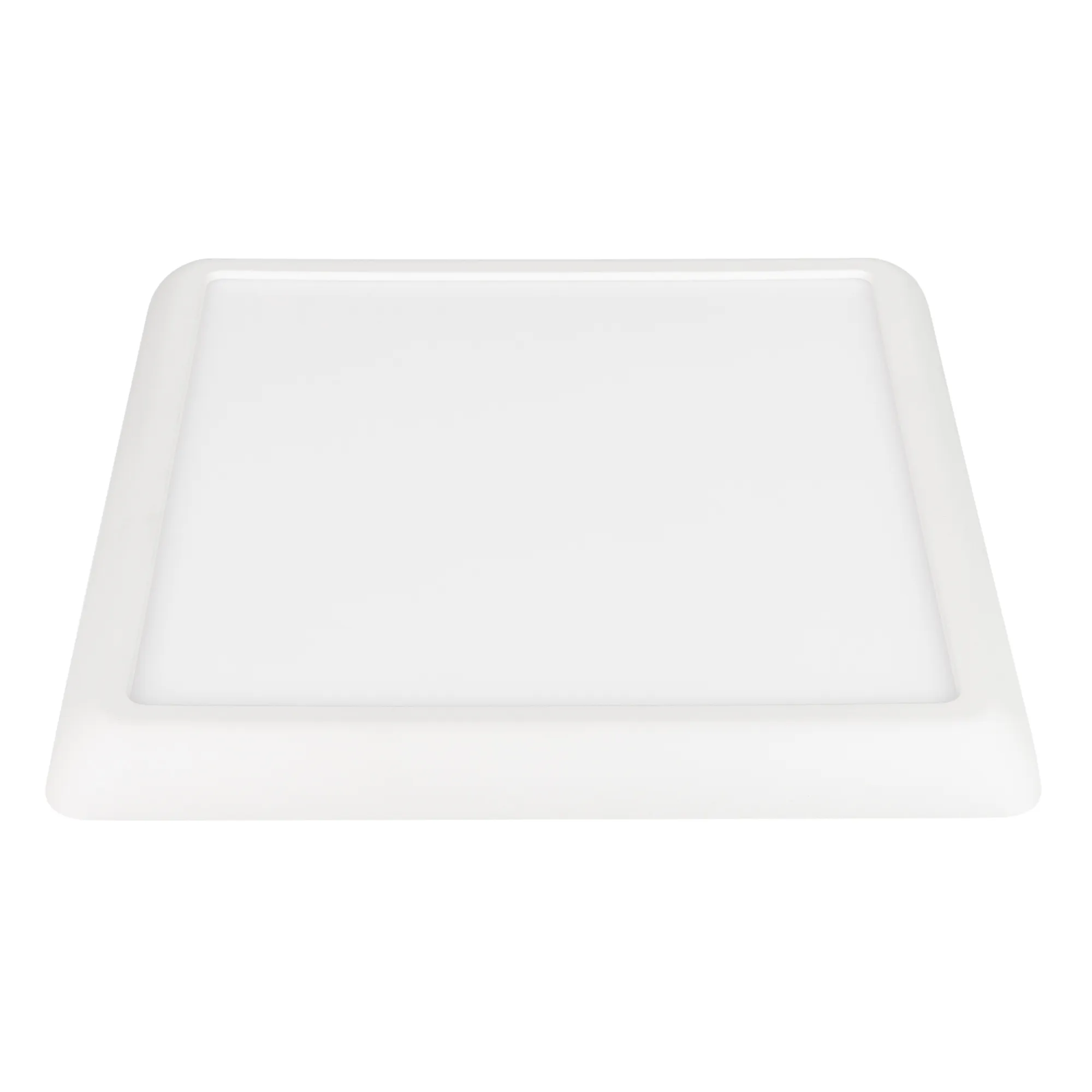 Накладной/встраиваемый светильник с изменяемой мощностью и цветовой температурой. Мощность 12-18 Вт, св. поток 1000-1700 лм, 83-94 лм/Вт, теплый 3000 K, дневной 4000K, белый 6000K, CRI>80, угол 120°, напряжение питания 230 В. Белый квадратный корпус из пластика, экран поликарбонат, степень защиты IP44. Размер: длина 220 мм, ширина 220 мм, высота 21,5 мм. Монтаж накладной/встраиваемый, установочное отверстие: диаметр 120-200 мм (регулируемое). Драйвер встроенный, пульсация <1%. Комплект крепежа поставляется отдельно.