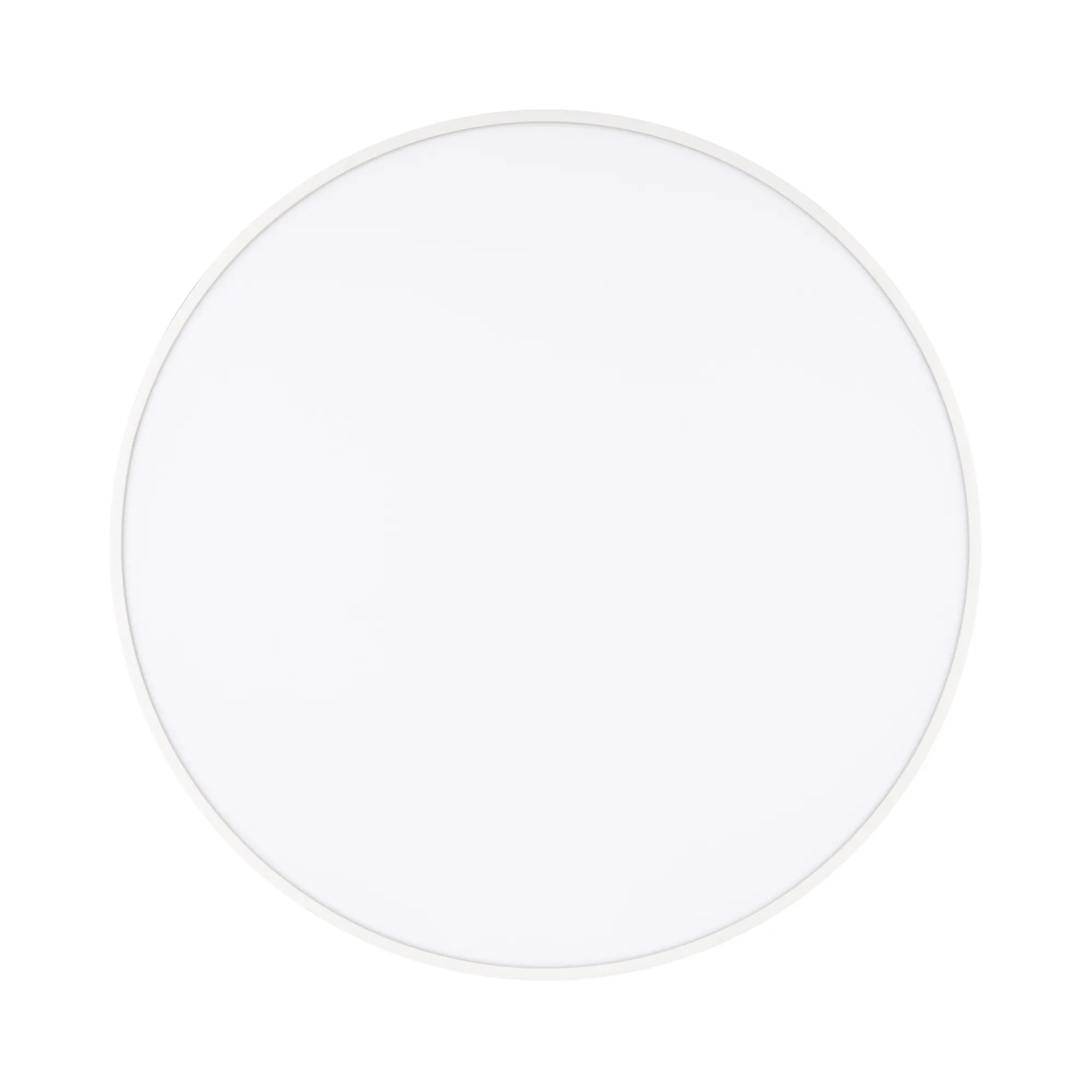 Накладной светильник. Мощность 30 Вт, св. поток 2200 лм, 75 лм/Вт, теплый 3000 K, CRI>90, угол 120°, напряжение питания 230 В. Белый круглый корпус из алюминия, экран PC, степень защиты IP40. Размер: диаметр 350 мм, высота 64 мм. Монтаж накладной. Драйвер 27-42 В, 800 мА, пульсация <5%.