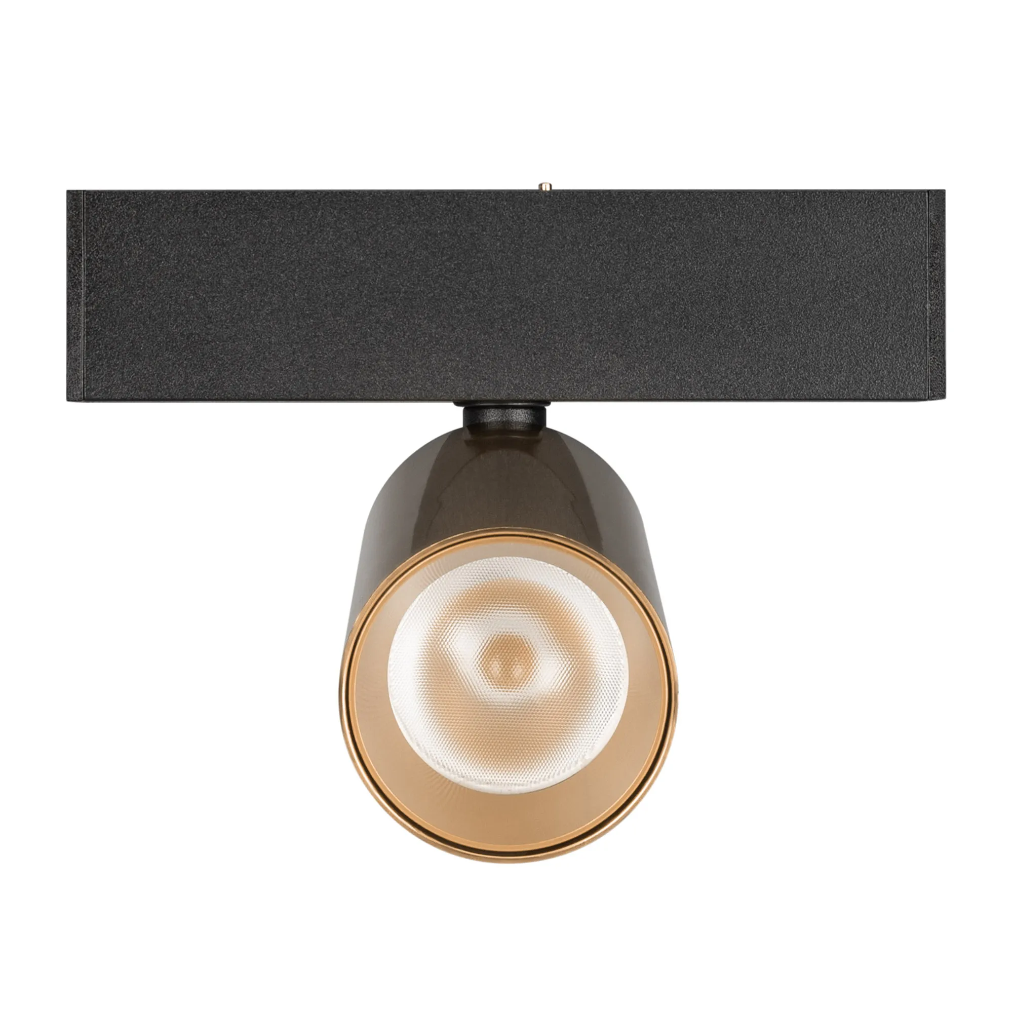 Светильник поворотный для магнитных треков шириной 25 мм, 9 Вт. Цвет свечения ДНЕВНОЙ 4000K, световой поток 630 лм, угол 30°, CRI>90. Корпус прямоугольный, металл, цвет черный-золотой, IP20. Размеры LxWxH 100x20x120 мм. Входное напряжение DC24V, мощность 9 Вт. Драйвер DС24V/AC230V поставляется отдельно.Диаметр светоизлучающего модуля 35 мм. Диммируется только с 026407, 027633.