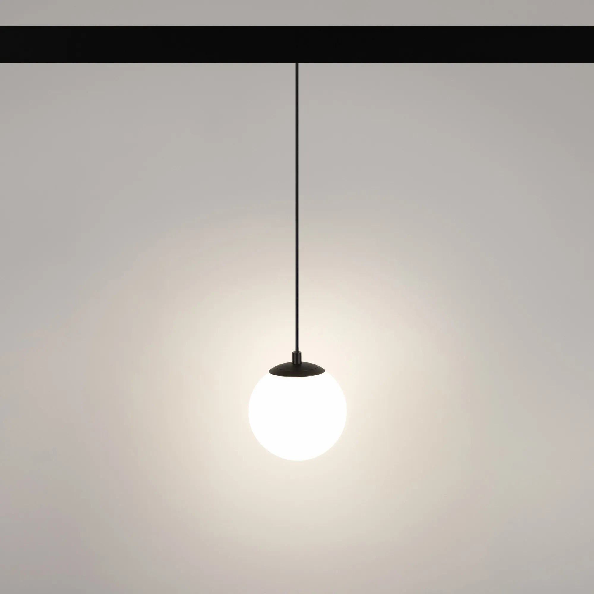 Светильник для магнитных треков MAG-ORIENT шириной 26 мм. Мощность 10 Вт, св. поток 900 лм, 100 лм/Вт, дневной 4000 K, CRI>90, угол 300°, напряжение питания 48 В. Матовый белый корпус из стекла, степень защиты IP20. Диаметр: 150 мм; Длина кабеля: 1500 мм. Монтаж на трек MAG-ORIENT. Пульсация <1%. Подвес не регулируется.