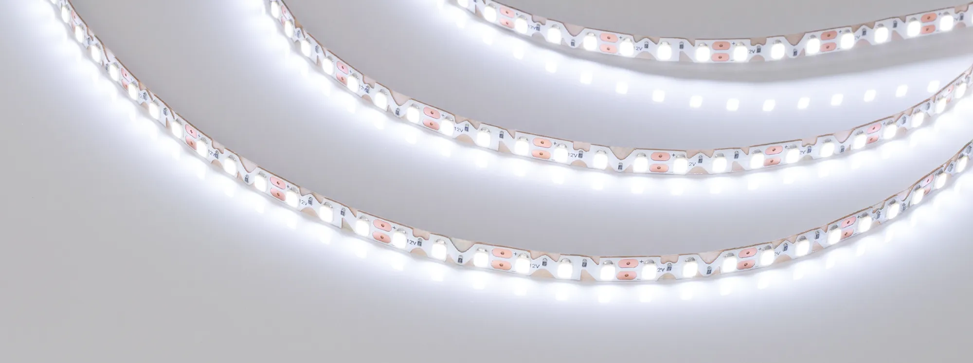 Гибкая светодиодная лента RZ серии A120 с фигурной платой в форме волны, легко изгибается на плоскости. Светодиоды SMD 2835, 120 шт/м, белая плата шириной 6 мм, скотч 3М. Цвет ХОЛОДНЫЙ 8000K, индекс цветопередачи CRI>85, угол 120°. Питание 12 В, мощность 12 Вт/м (60Вт на 5 м). Размеры 5000х6х1.5 мм. Мин. отрезок 25 мм, 3 светодиода. Цена за 1 м.