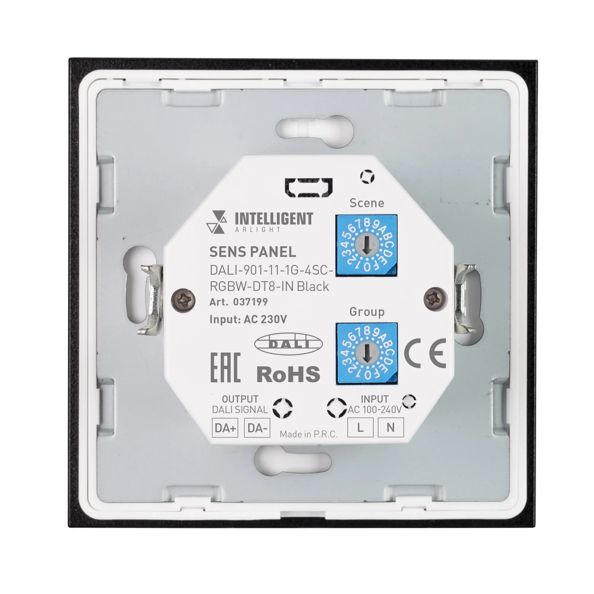 INTELLIGENT ARLIGHT Сенсорная панель DALI-901-11-1G-4SC-RGBW-DT8-IN Black (BUS/230V) (IARL, IP20 Пластик, 3 года)