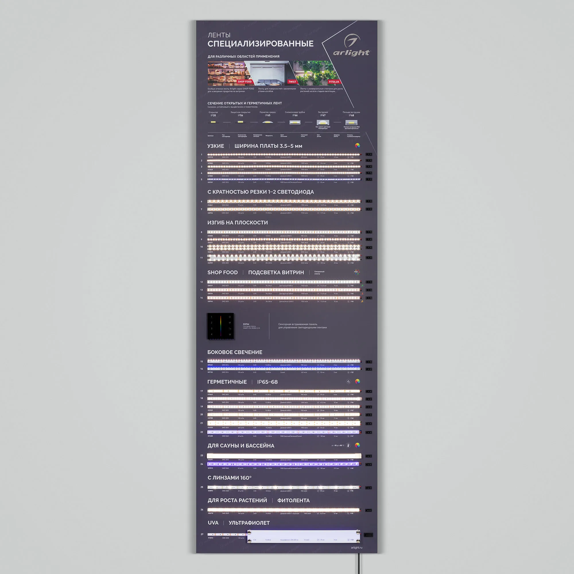 Наши специалисты знают все о продукции Arlight и с радостью помогут Вам выбрать комплектующие к товару "Стенд Ленты Специализированные RT-LUX-E3-1760x600mm (v.2, DB 3мм, пленка, подсветка) (Arlight, -)", или другие товары из раздела "Светодиодные ленты".