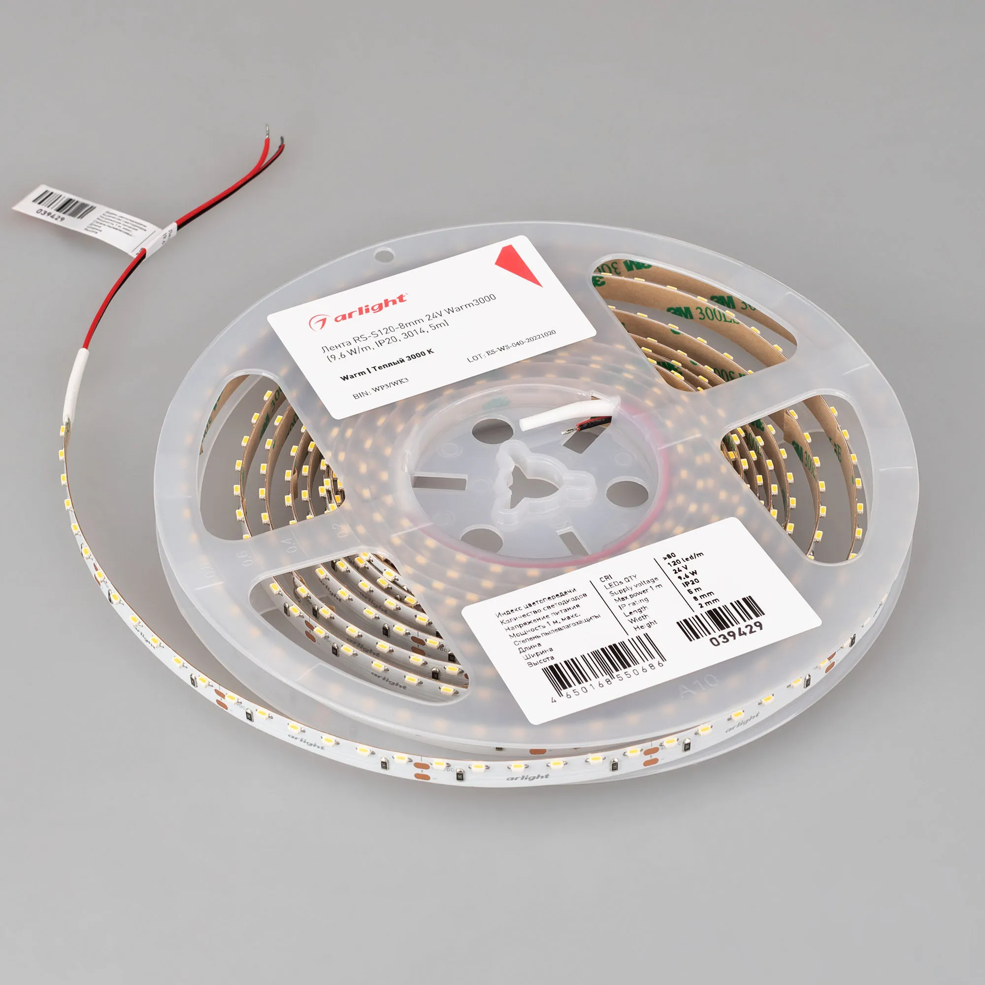 Лента светодиодная RS-S120-8mm 24V Warm3000 (9.6 W/m, IP20, 3014, 5m) (Arlight, боковое свечение)