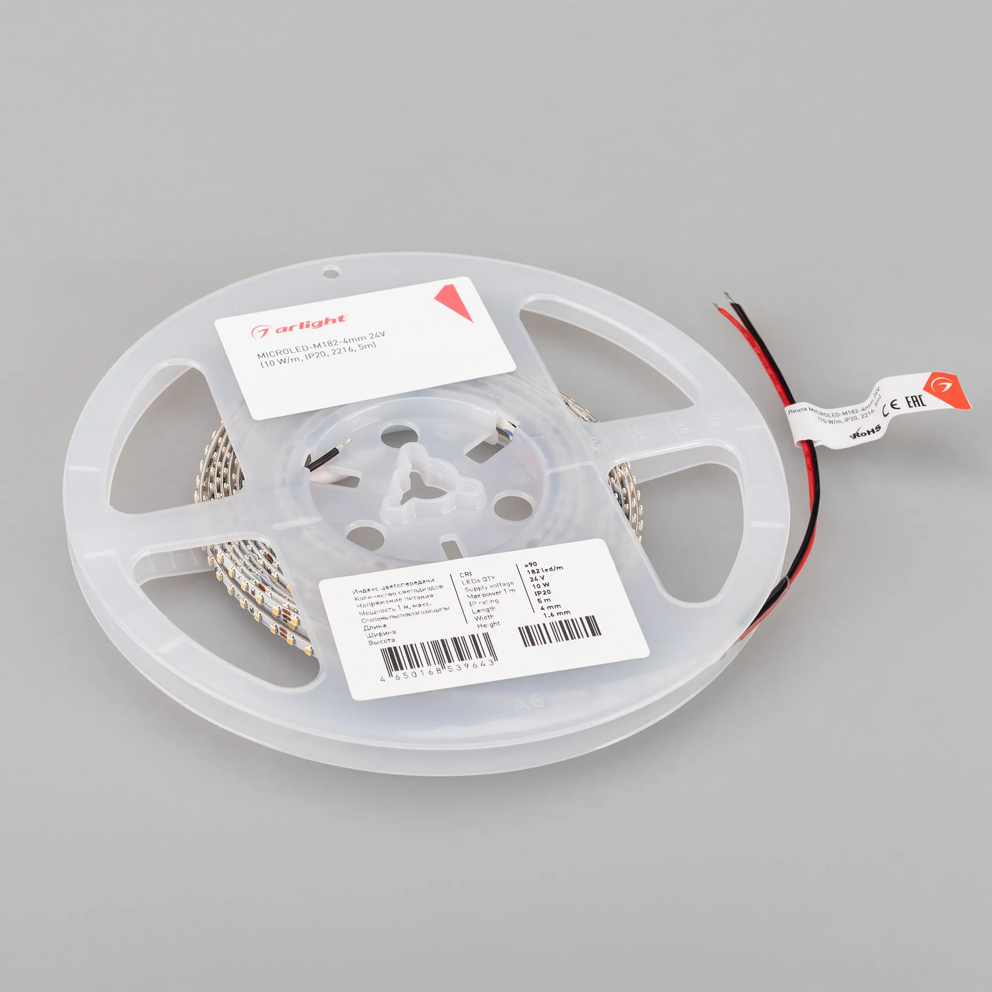 В магазине Мельковский Свет Вы можете купить "Лента светодиодная MICROLED-M182-4mm 24V Warm3500 (10 W/m, IP20, 2216, 5m) (Arlight, узкая)"