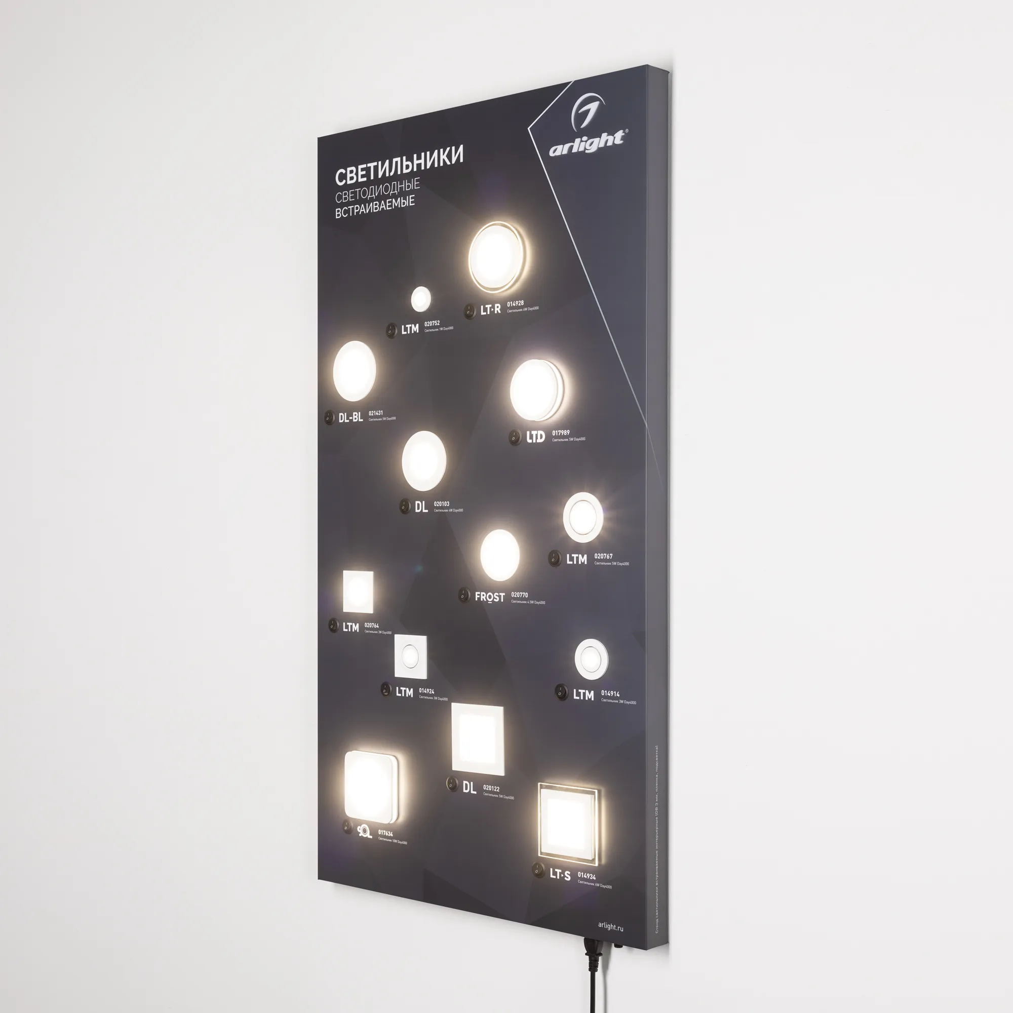 Стенд Светильники встраиваемые Интерьерные ARLIGHT-1100x600mm (DB 3мм, пленка, подсветка) (Arlight, Пластик)