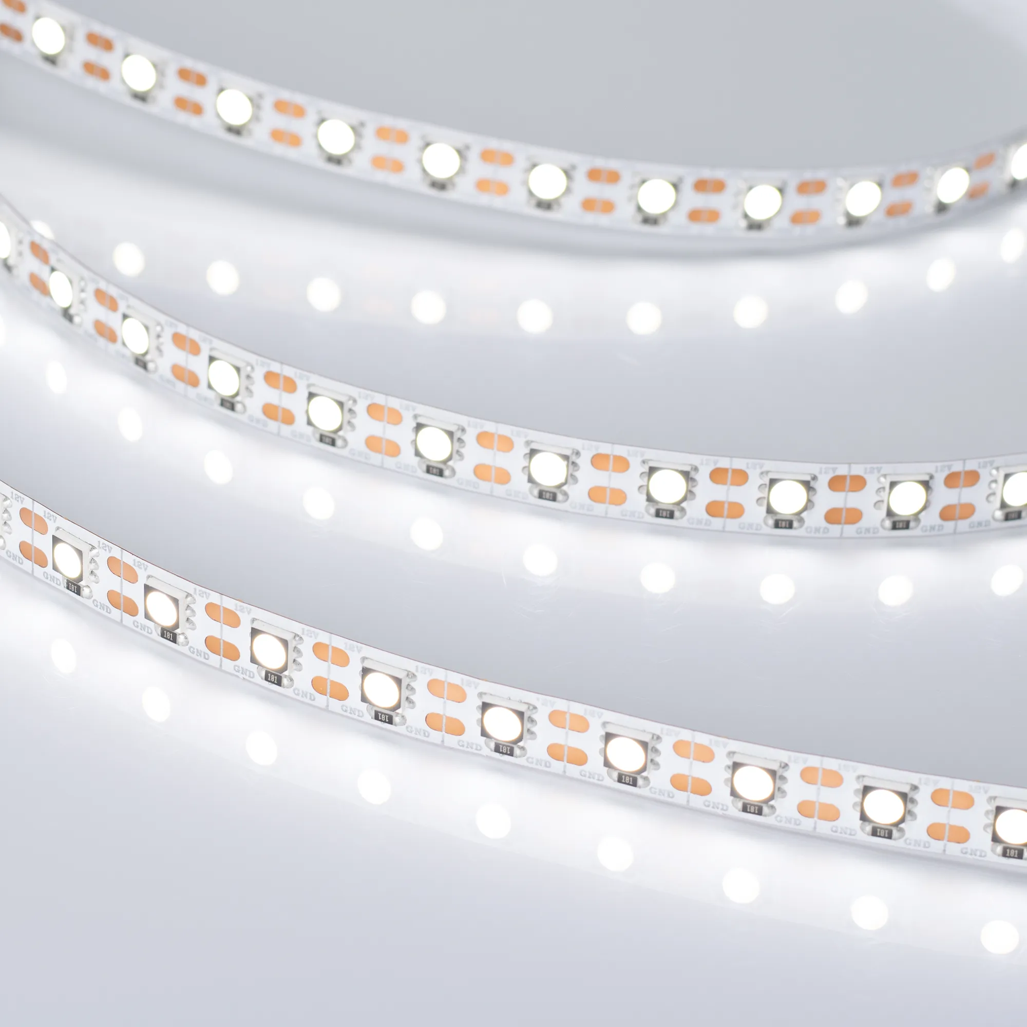 Поставка под заказ от 500 м. CRI98, гибкая лента, разрезается по одному светодиоду, smd 5060, 72шт/м (360шт на 5м), белая плата 10мм, скотч 3М. Цвет ДНЕВНОЙ 3800-4200K. Питание 12V, мощность 16.8 Вт/м (84 Вт на 5м), угол 120°, очень высокая цветопередача CRI 95..98. Размеры 5000х10x2.2мм. Мин.отрезок 13.9 мм, 1 светодиод. Цена за 1м.