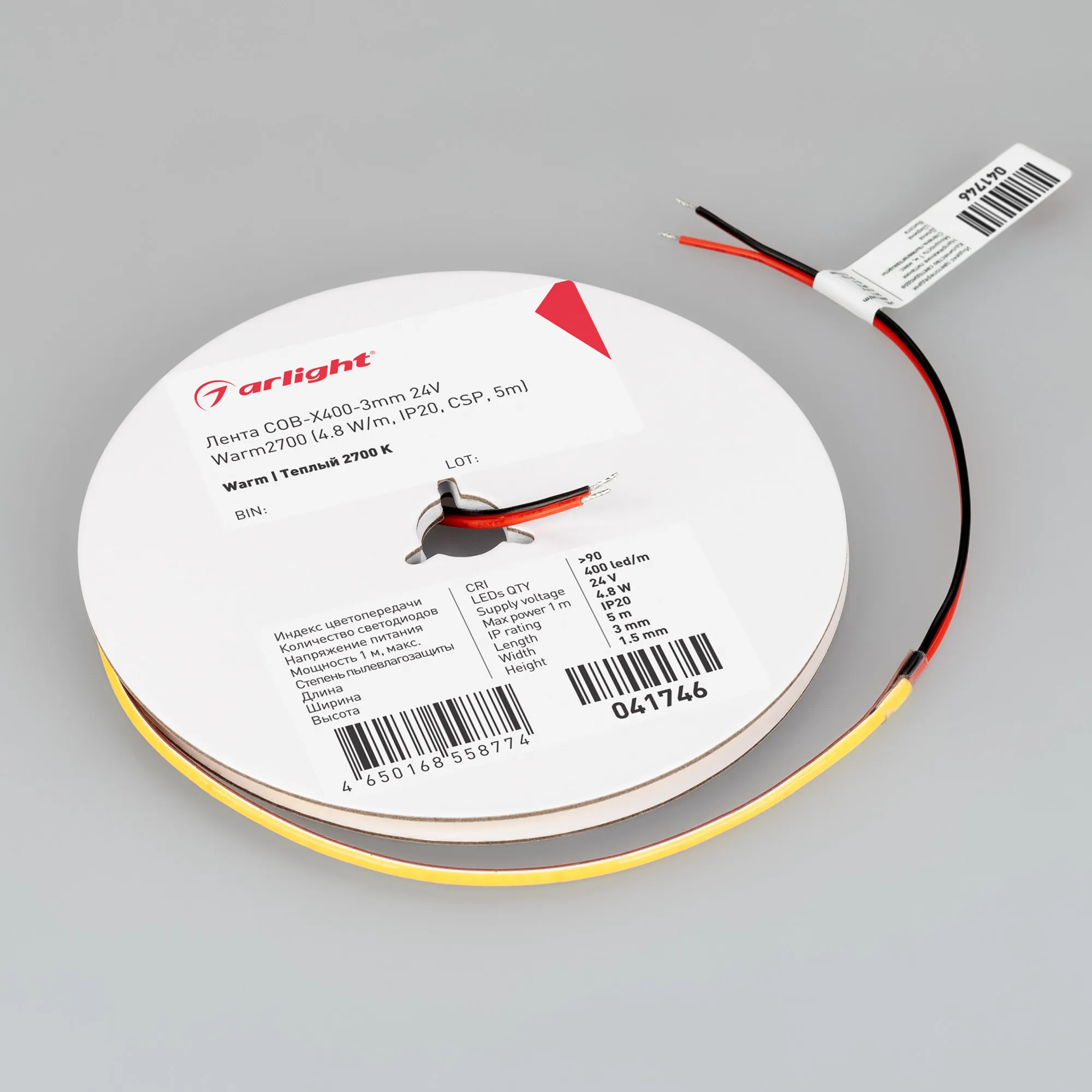 Лента светодиодная COB-X400-3mm 24V Warm2700 (4.8 W/m, IP20, CSP, 5m) (Arlight, -)