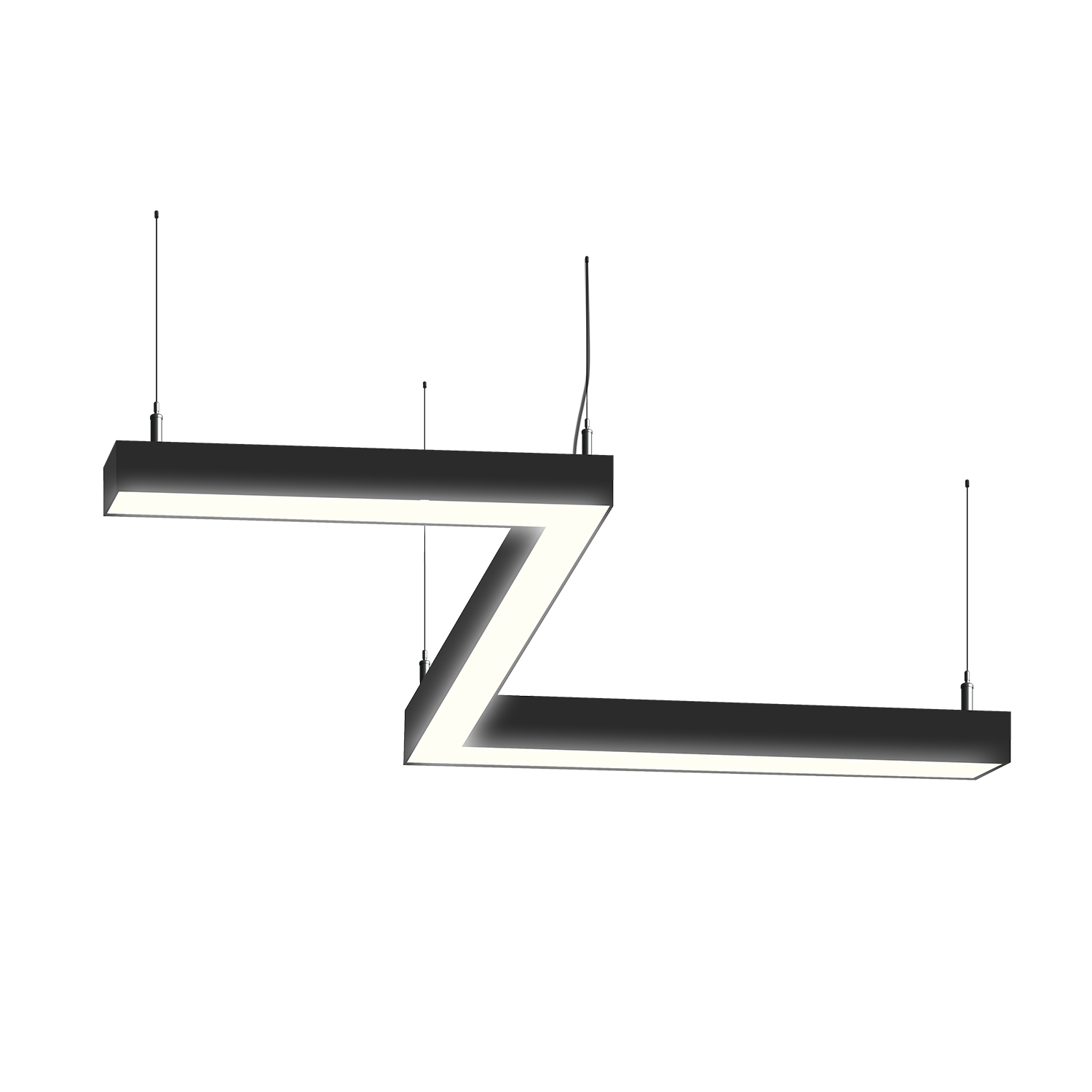 Cветодиодный фигурный светильник MS-ZIG Зигзаг размер профиля 50x50мм длиной 4х500мм мощностью 80W. Светильник собирается из алюминиевого основния с матовым рассеивателем, который дает равномерную засветку по всей площади.