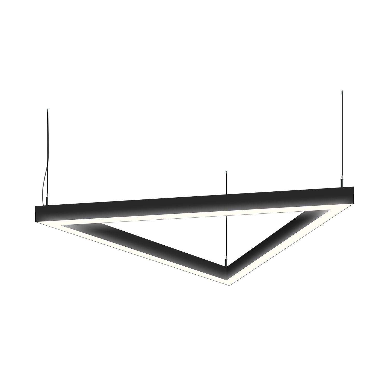 Cветодиодный фигурный светильник MS-TRIO-O Треугольник размер профиля 50x50мм длиной 3х500мм мощностью 30W. Светильник собирается из алюминиевого основния с матовым рассеивателем, который дает равномерную засветку по всей площади.