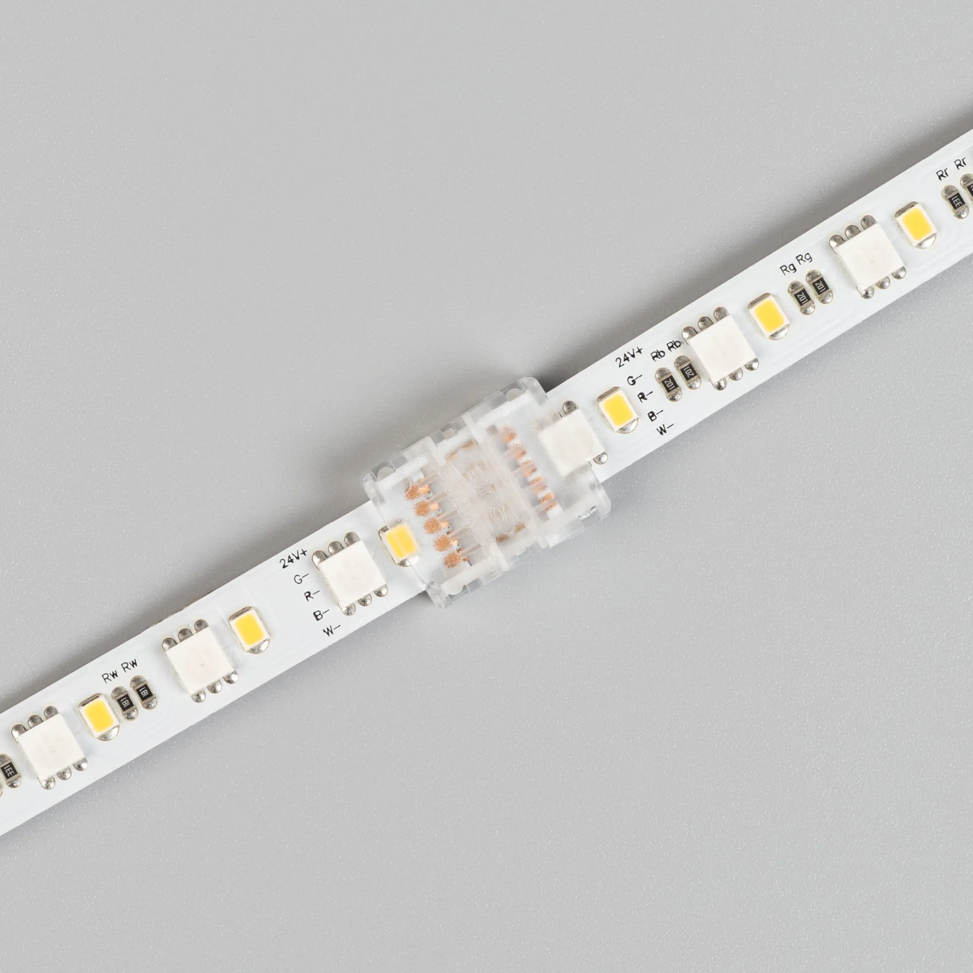 Одиночный коннектор для соединения 2-х отрезков открытых светодиодных IP20 RGBW лент шириной 10 мм. Материал - прозрачный пластик. Обеспечивает соединение без видимых разрывов. Максимальный допустимый ток 3 А, напряжение 3-24 В. Цена за 1шт.