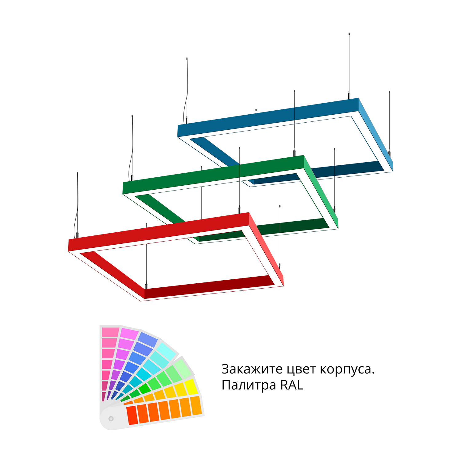 - Светильники доступны в базовых цветах: черный/серый/белый, дополнительно могут быть окрашены в любом цвете палитры RAL (уточняется у менеджера).