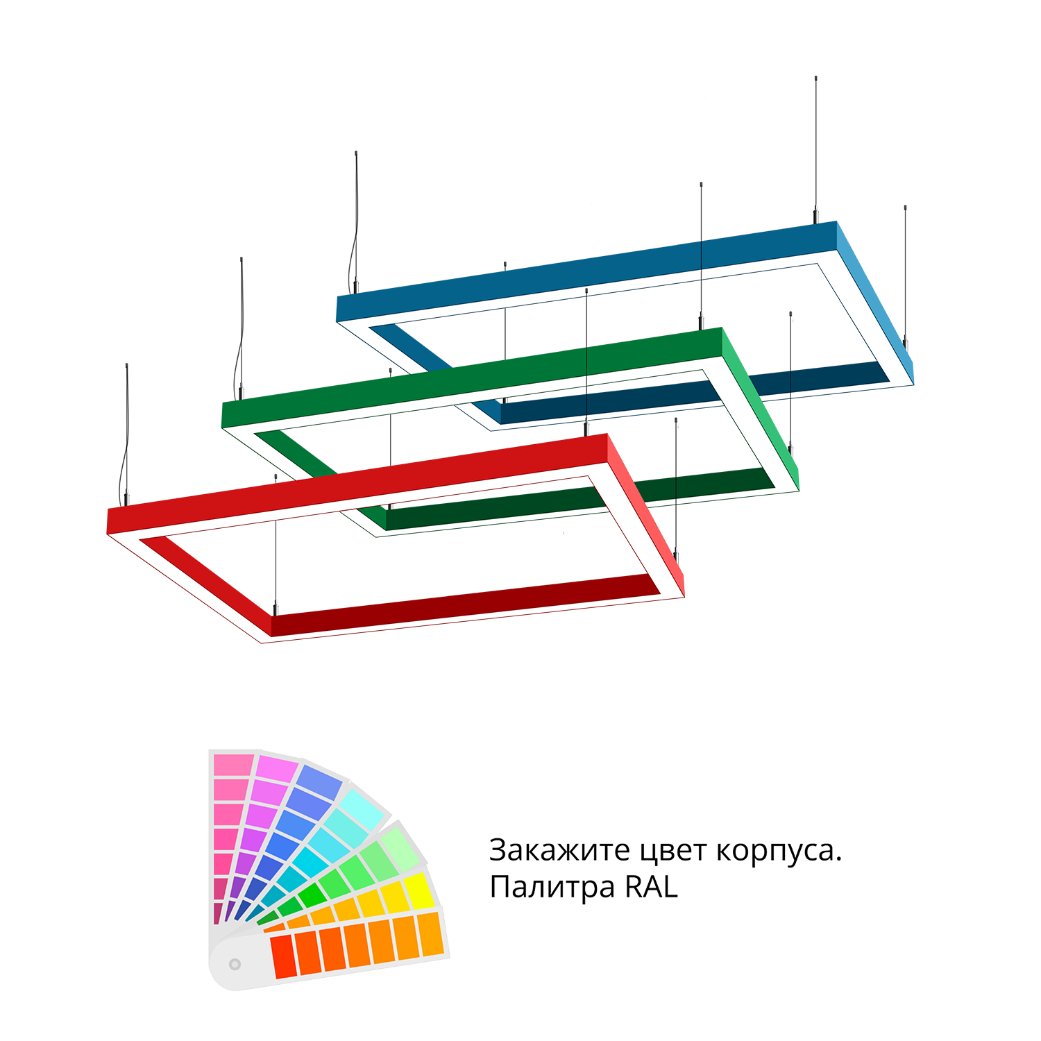 Прямоугольный линенйный светильник имеет равномерную засветку по всей площади рассеивателя. Возможно изготовление светильника с магистральной проводкой для соединения нескольких светильников в сплошную конструкцию. Цветовая температура от 3000К до 6000К. Можно выбрать любой цвет RAL.