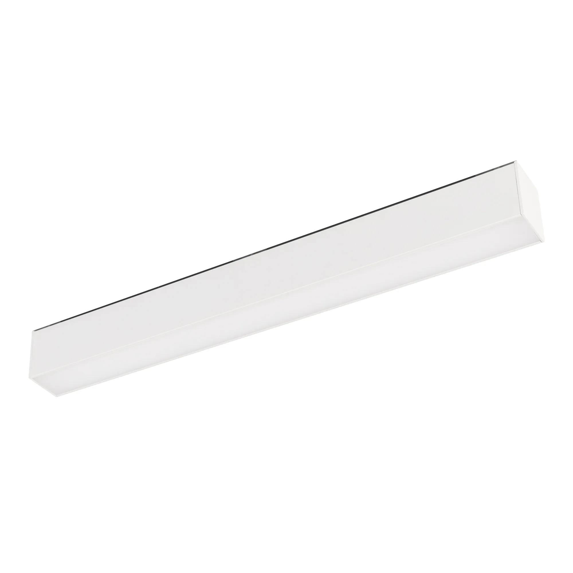 Светильник для магнитных треков шириной 45мм, 12Вт с управлением DALI. Цвет свечения ТЕПЛЫЙ 3000K, световой поток 1200лм, угол 100°, CRI>90. Корпус прямоугольный, металл, цвет белый, IP20. Размеры LxWxH 404x35x43мм. Входное напряжение DC24V, мощность 12Вт. Драйвер поставляется отдельно.