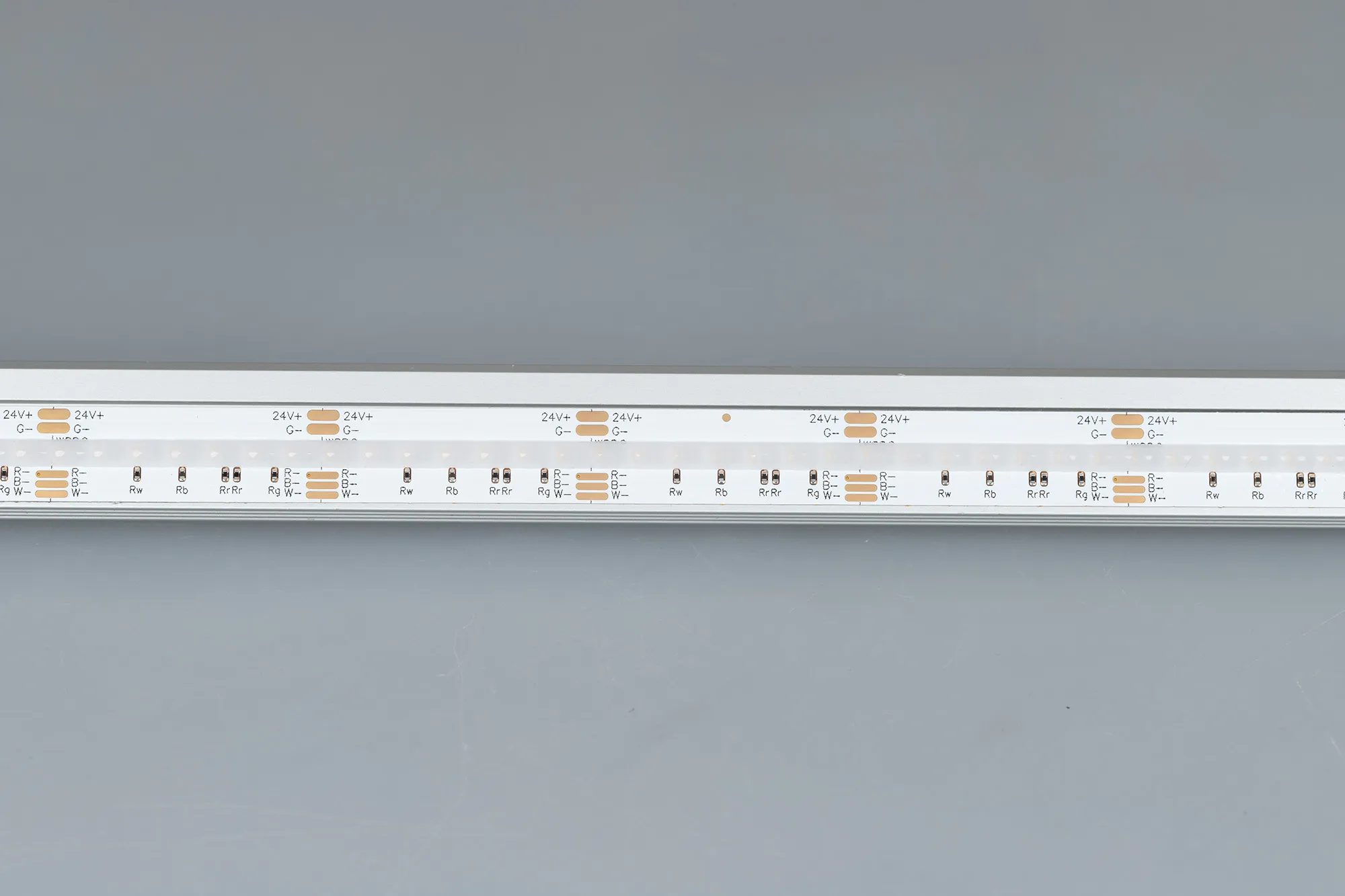 Светодиодная лента сплошного свечения COB серии X840. Светодиоды CSP, 840 шт/м, белая плата шириной 12 мм, скотч 3M. Цвет RGB + ДНЕВНОЙ 4000K, индекс цветопередачи CRI>90, угол 160° Питание 24 В, мощность 17.2 Вт/м (86 Вт на 5 м). Размеры 5000x12x1.9мм. Мин. отрезок 33.33 мм. Цена за 1 м. Обязательна установка на профиль.