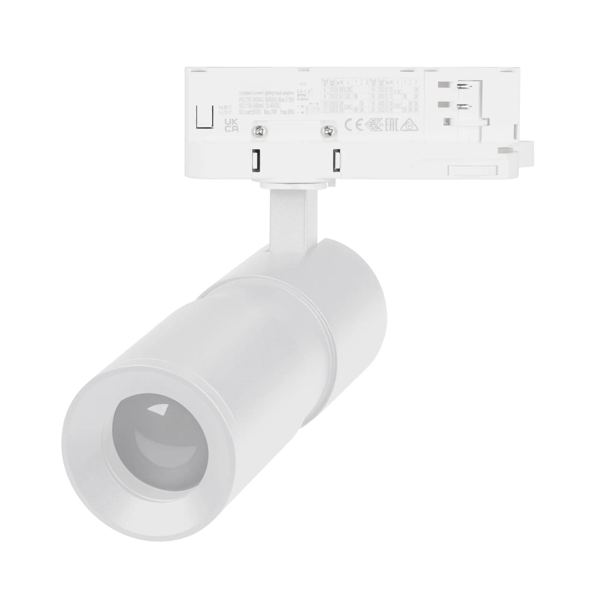 Светильник для треков/шин 4 провода, 12Вт. Цвет свечения ТЁПЛЫЙ 3000K, световой поток 721 лм, 65 лм/Вт, регулируемый угол 8-80°, CRI>90. Корпус круглый, алюминий, цвет белый, IP20. Размеры L × W × H (Ø) 192 х 144 х Ø55 мм. Входное напряжение AC220-240V, мощность 12Вт. Драйвер встроенный (20-40V, 250 мА). Пульсация <0,5%.