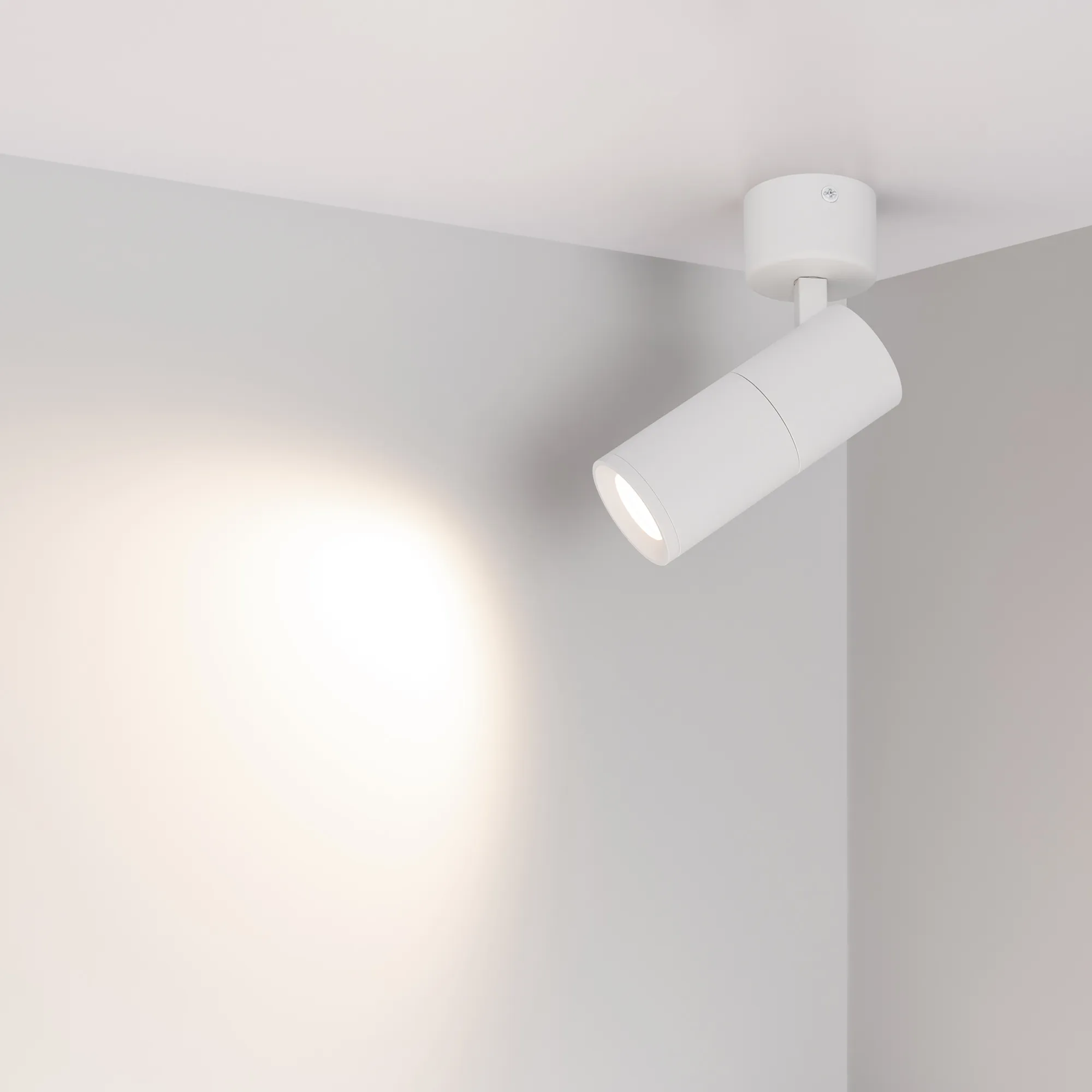 Накладной откидной поворотный светильник, 12Вт. Цвет свечения ДНЕВНОЙ 4000K, световой поток 720 лм, 60 лм/Вт, регулируемый угол 8-80°, CRI>90. Корпус круглый, металл, цвет белый, IP20. Размеры DxHxL Ø55x132~163,5 мм. Размер чаши Ø60,7x33,5 мм. Входное напряжение AC220-240V, мощность 12Вт. Драйвер встроенный (24-40V, 300 мА). Пульсация <1%.