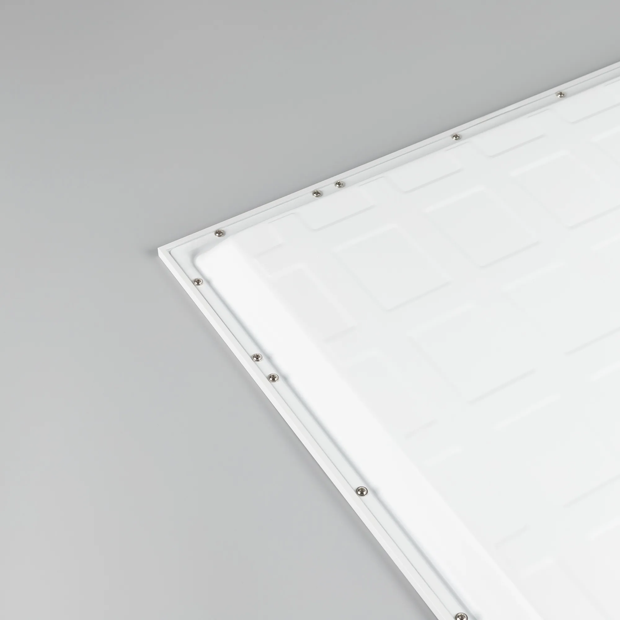 Светодиодная панель с прямой засветкой (backlit). Мощность 40 Вт, св. поток 4000 лм, 100 лм/Вт, дневной 4000 K, CRI>90, угол 120°, напряжение питания 230 В. Белый квадратный корпус из алюминия, экран PS, степень защиты IP54. Размер: длина 595 мм, ширина 595 мм, высота 31,3 мм. Монтаж встраиваемый, установочное отверстие длина 575 мм, ширина 575 мм. Драйвер 28-42 В, 1000 мА, пульсация <1% со степенью защиты IP65, подключение с помощью герметичного коннектора.