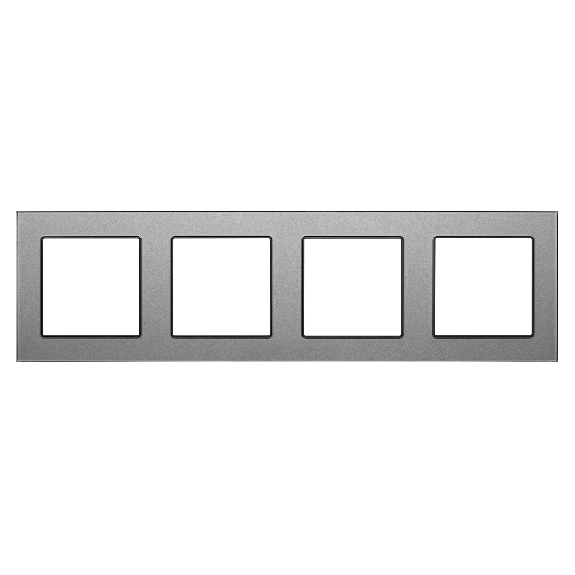Рамка стеклянная на 4 поста, под встраиваемый механизм (квадрат). Цвет - серый. Ориентации монтажа - горизонтальная.
