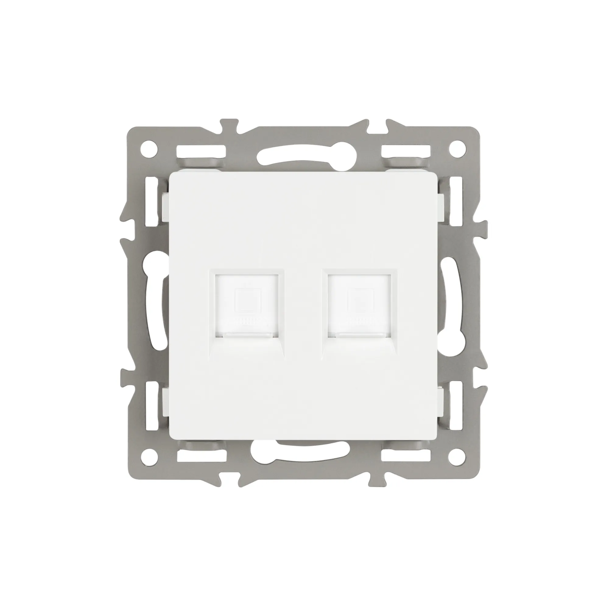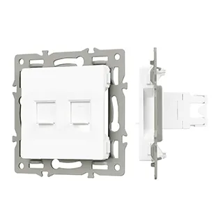 Механизм компьютерной розетки на 1 пост 2 слота 6-й категории (CAT6), с суппортом из алюминия. Цвет - белый. Степень пылевлагозащиты - IP20.