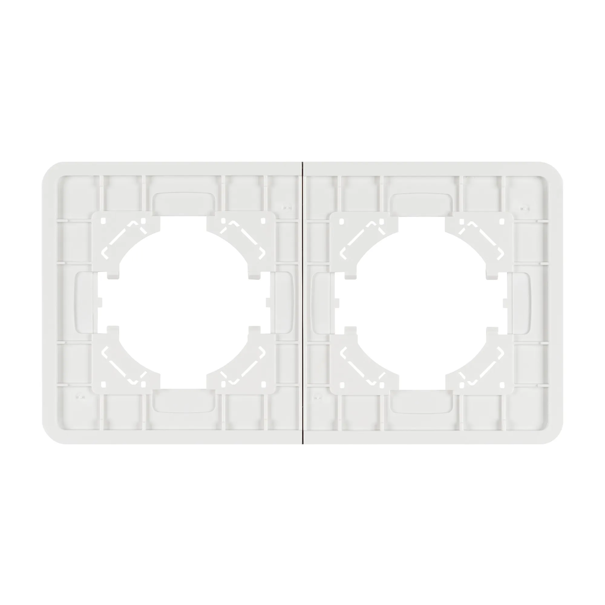 Рамка алюминиевая на 2 поста, под встраиваемый механизм. Цвет - серебристый с Soft-Touch покрытием. Среднего уровня герметичности IP20. Ориентация монтажа - горизонтальная (основным ориентиром служат посадочные выступы для накладки механизма).