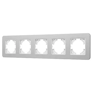 Рамка алюминиевая на 5 постов, под встраиваемый механизм. Цвет - серебристый с Soft-Touch покрытием. Среднего уровня герметичности IP20. Ориентация монтажа - горизонтальная (основным ориентиром служат посадочные выступы для накладки механизма).