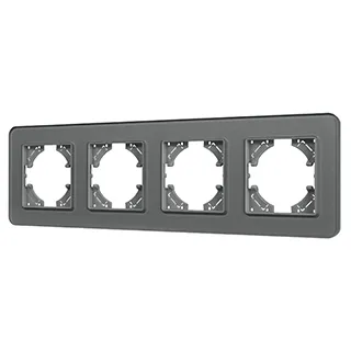 Рамка стеклянная на 4 поста, под встраиваемый механизм. Цвет - серый с Soft-Touch покрытием. Среднего уровня герметичности IP20. Ориентация монтажа - горизонтальная (основным ориентиром служат посадочные выступы для накладки механизма).