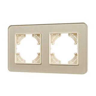 Рамка стеклянная на 2 поста, под встраиваемый механизм. Цвет - золотой. Среднего уровня герметичности IP20. Ориентация монтажа - горизонтальная (основным ориентиром служат посадочные выступы для накладки механизма).