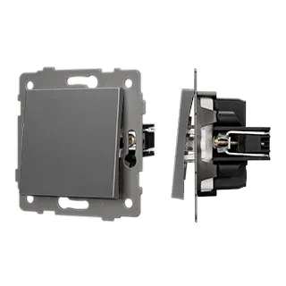 Механизм выключателя света клавишный на 1 пост 1 клавиша (перекрестный). Цвет - серый. Без фронтальной рамки. Уровень пылевлагозащиты IP20. Выключатель устанавливается в стандартный круглый подрозетник.