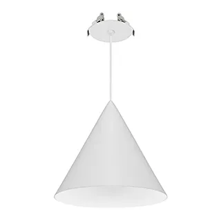 Подвесной светильник. Мощность 10 Вт, св. поток 650 лм, 65 лм/Вт, теплый 3000 K, CRI>94, угол 36°, напряжение питания 230 В. Белый корпус из алюминия в форме конуса с белой внутренней поверхностью, линза-рассеиватель из PMMA, степень защиты IP20. Размер: диаметр 180 мм, высота 175 мм. Монтаж подвесной, длина подвеса 2000 мм, регулируемая. В комплекте две чаши. Габариты чаши (встроенной) Ø80 х 41 мм, врезное отверстие Ø55 мм, габариты чаши (накладной) Ø110 х 25 мм. Драйвер 2,8-12В, 500 мА, пульсация <1%. Управление по TRIAC.