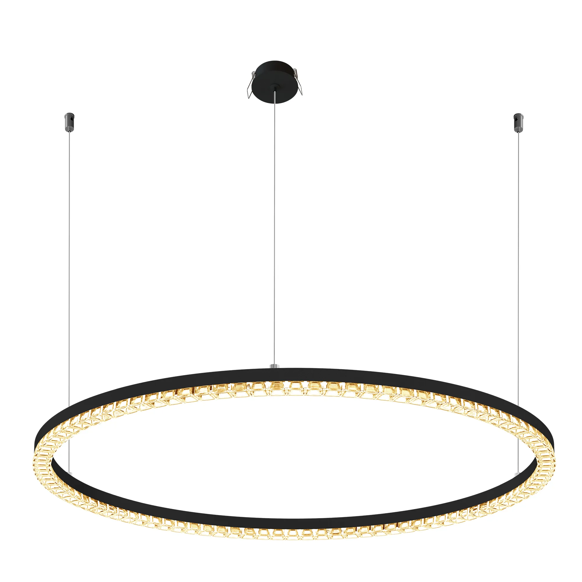 Подвесной светильник. Мощность 36 Вт, св. поток 3160 лм, 80-95 лм/Вт, дневной белый 4000K, CRI>90, угол 45°, напряжение питания 230 В. Чёрный круглый корпус из алюминия, экран PMMA, степень защиты IP20. Размер: диаметр 650 мм, высота 34 мм, ширина профиля 30 мм, размер чаши: диаметр 65 мм, высота 26 мм. Монтаж подвесной, длина подвеса 1200 мм, тип чаши встраиваемый, диаметр установочного отверстия чаши 60 мм. Драйвер 27-38 В, 1050 мА. Пульсация <0,3 %.