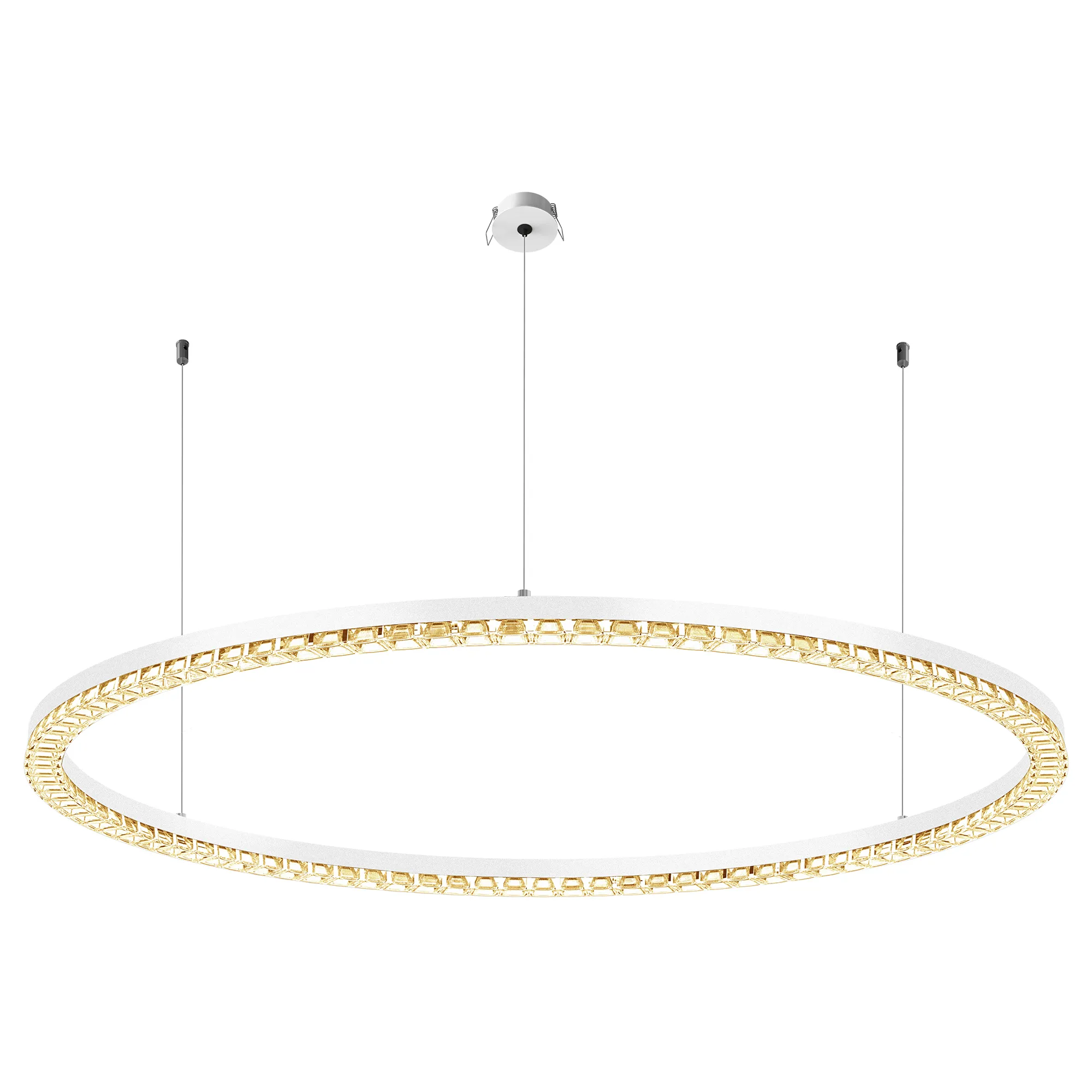 Под заказ. Подвесной светильник. Мощность 80 Вт, св. поток 7010 лм, 80-95 лм/Вт, дневной белый 4000 K, CRI>90, угол 45°, напряжение питания 230 В. Белый круглый корпус из алюминия, экран PMMA, степень защиты IP20. Размер: диаметр 1250 мм, высота 34мм, ширина профиля 30 мм, размер чаши: диаметр 65 мм, высота 26 мм. Монтаж подвесной, длина подвеса 1200 мм, тип чаши встраиваемый, диаметр установочного отверстия чаши 60 мм. Драйвер (2 шт.) 9-38 В, 1050 мА. Пульсация <0,3 %.