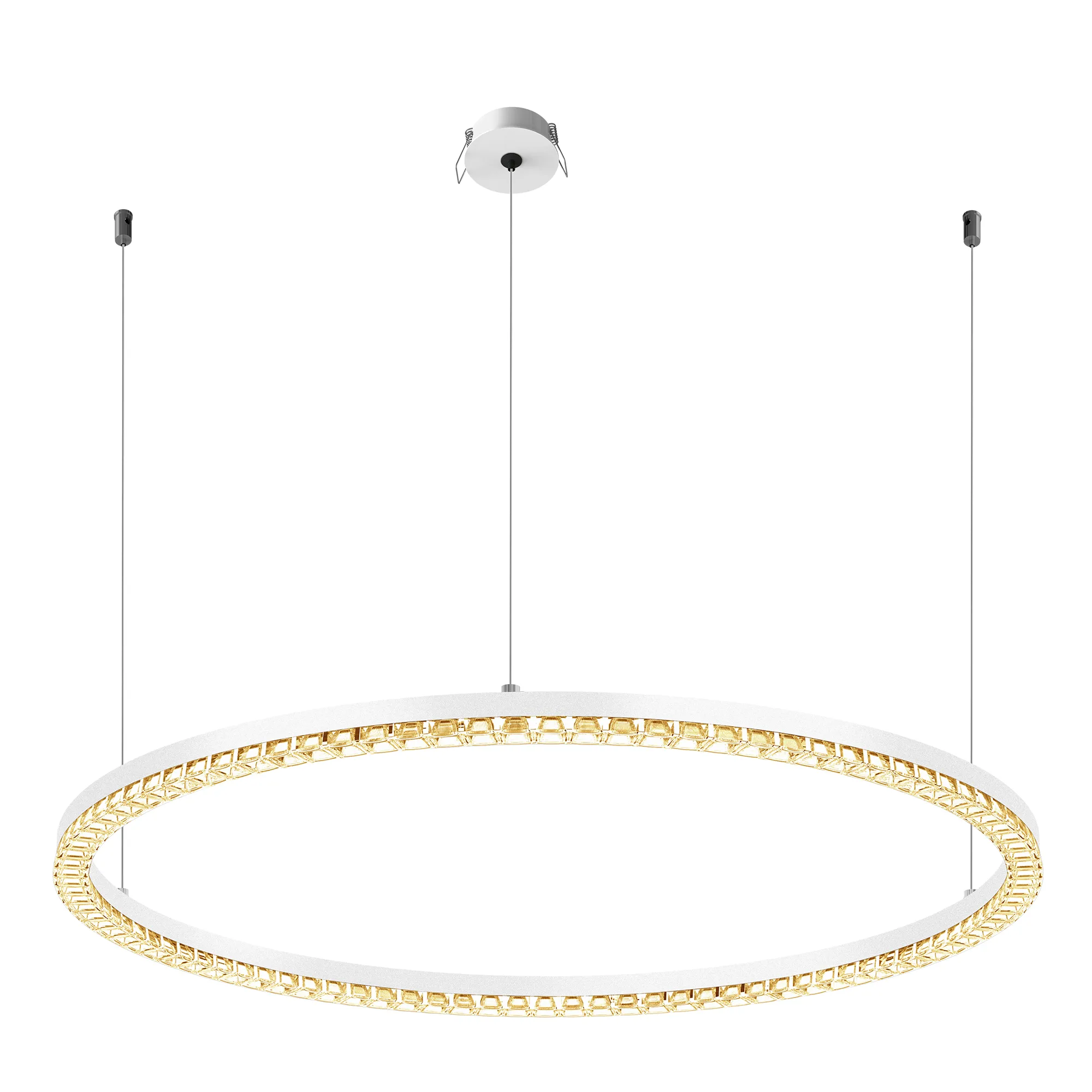 Под заказ. Подвесной светильник. Мощность 36 Вт, св. поток 2900 лм, 80-95 лм/Вт, теплый 3000K, CRI>90, угол 45°, напряжение питания 230 В. Белый круглый корпус из алюминия, экран PMMA, степень защиты IP20. Размер: диаметр 650 мм, высота 34 мм, ширина профиля 30 мм, размер чаши: диаметр 65 мм, высота 26 мм. Монтаж подвесной, длина подвеса 1200 мм, тип чаши встраиваемый, диаметр установочного отверстия чаши 60 мм. Драйвер 27-38 В, 1050 мА. Пульсация < 0,3 %.