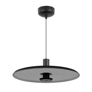 Подвесной светильник. Мощность 12 Вт, св. поток 768 лм, 64 лм/Вт, теплый 3000 K, CRI>94, угол 36°, напряжение питания 230 В. Темно-серый фигурный плафон из переработанного фетра со светло-серой внутренней поверхностью, линза-рассеиватель из PMMA, степень защиты IP20. Размер: диаметр 450 мм, высота 145 мм. Монтаж подвесной, длина подвеса 2000 мм, регулируемая. В комплекте 2 вида чаш. Габариты чаши (встраиваемая) Ø80 х 23 мм, врезное отверстие Ø60 мм. Габариты чаши (накладная) Ø120 x 35 мм. Драйвер 59В, 300 мА, пульсация <1%. Управление по TRIAC.