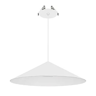 Подвесной светильник. Мощность 10 Вт, св. поток 600 лм, 60 лм/Вт, теплый 2700 K, CRI>94, угол 36°, напряжение питания 230 В. Белый корпус из алюминия в форме конуса с белой внутренней поверхностью, линза-рассеиватель из PMMA, степень защиты IP20. Размер: диаметр 300 мм, высота 80 мм. Монтаж подвесной, длина подвеса 2000 мм, регулируемая. В комплекте две чаши. Габариты чаши (встроенной) Ø80 х 41 мм, врезное отверстие Ø55 мм, габариты чаши (накладной) Ø110 х 25 мм. Драйвер 2,8-12В, 500мА, пульсация <1%. Управление по TRIAC.