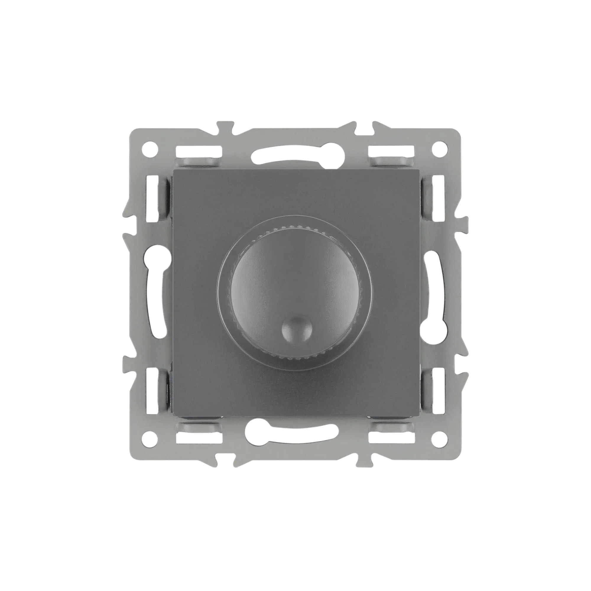 Механизм регулировки света на 1 пост, с суппортом из алюминия. Цвет - серый. Без фронтальной рамки. Уровень пылевлагозащиты - IP20. Механизм устанавливается в стандартный круглый подрозетник. Максимальная нагрузка 300 Вт только для ламп накаливания и галогенных, 100 Вт только для энергосберегающих и светодиодных ламп.
