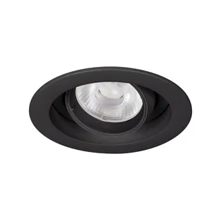 Поставка под заказ от 120 шт. Встраиваемый карданный светильник. Мощность 12 Вт, св. поток 1318 лм, 116 лм/Вт, тёплый 3000 K, CRI>92, угол 20°, напряжение питания 230 В. Чёрный корпус из алюминия, чёрная вставка, степень защиты IP20. Размер: диаметр 90мм, высота 80 мм. Монтаж встраиваемый, установочное отверстие: диаметр 75мм. Драйвер 27-40 В, 300 мА, пульсация <2%.